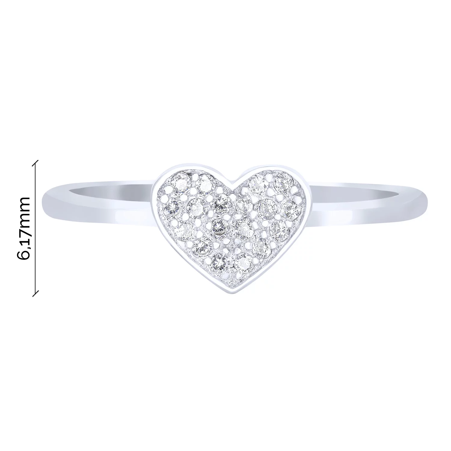 Каблучка "Серце" у сріблі з фіанітами - 1581117