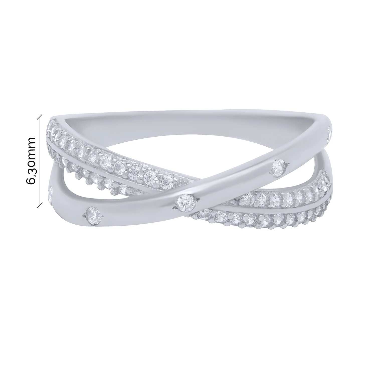 Каблучка срібна "Переплетіння" з фіанітами - 1682869