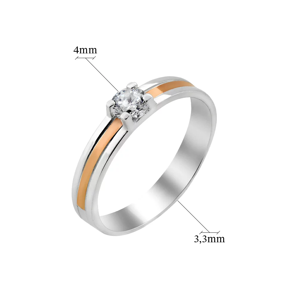 Елегантна розсувна срібна каблучка у мінімалістичному стилі з фіанітом - 1957214