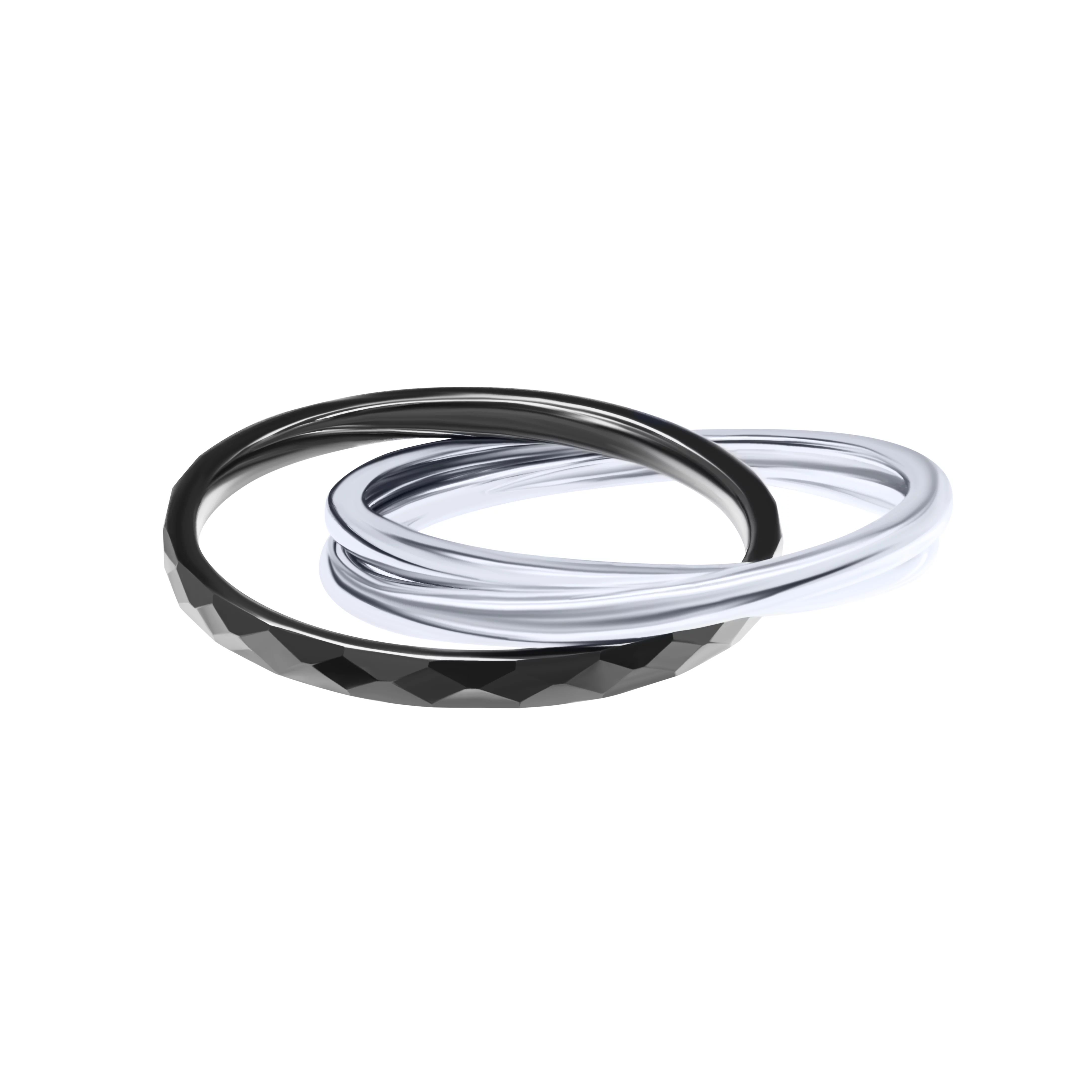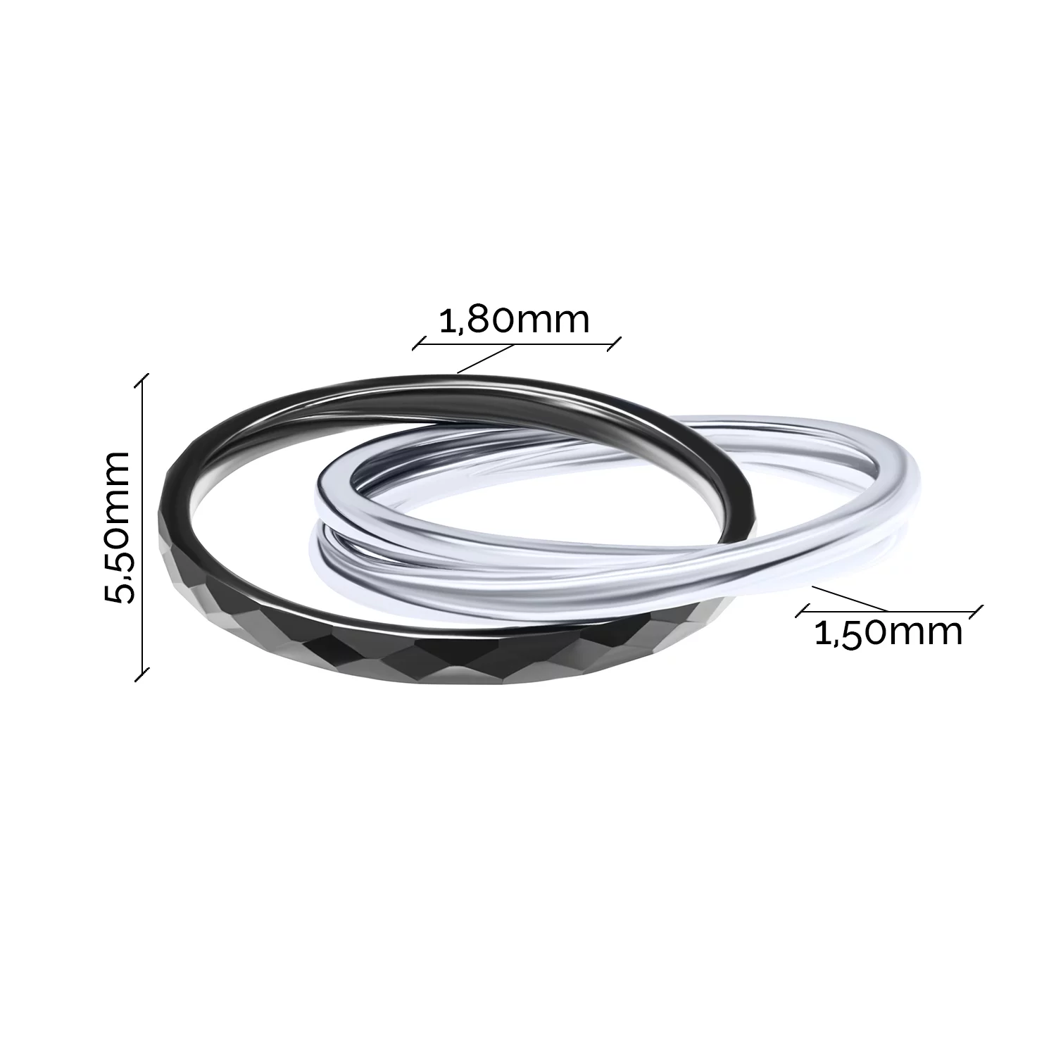 Каблучка потрійна зі срібла з керамікою та гранями - 1815013