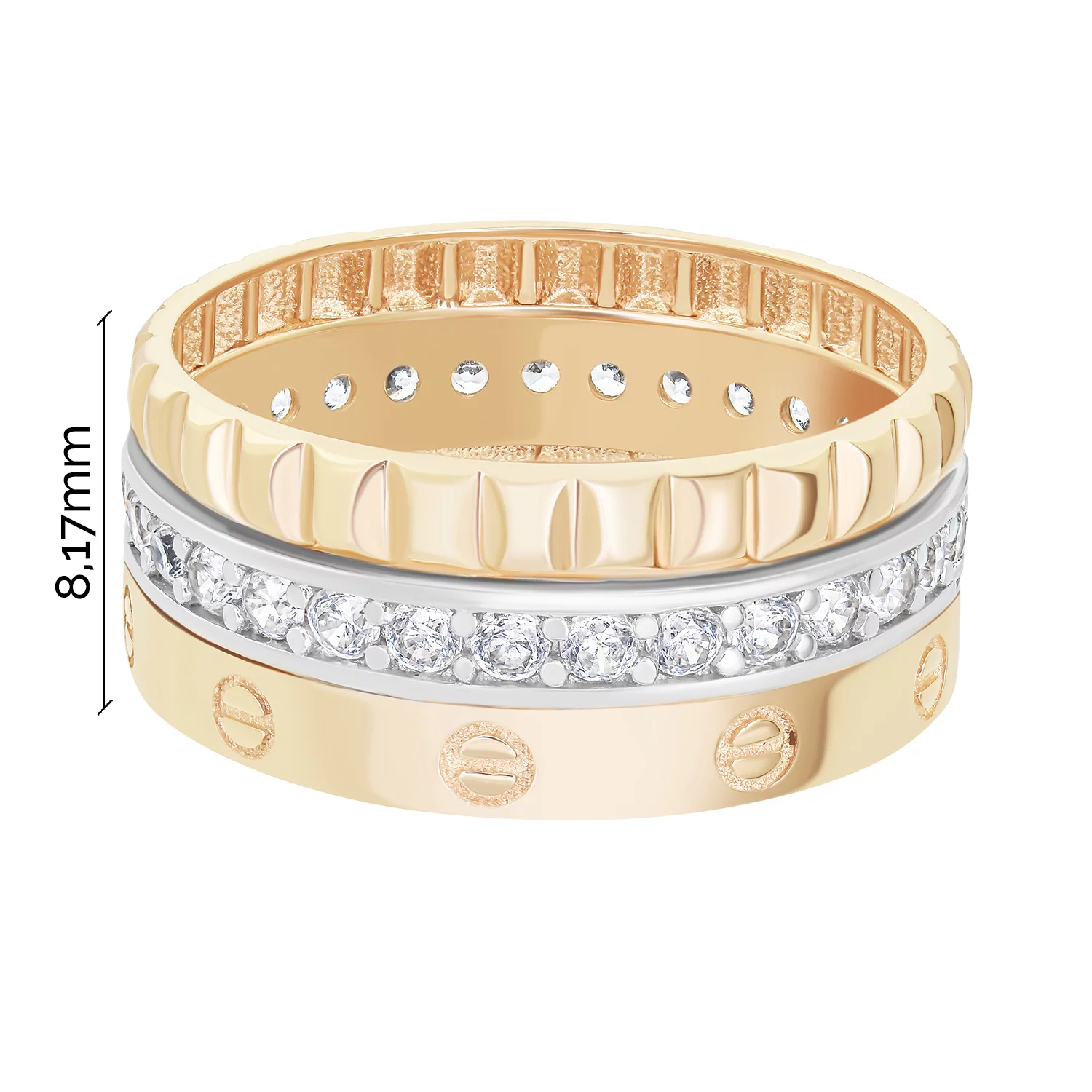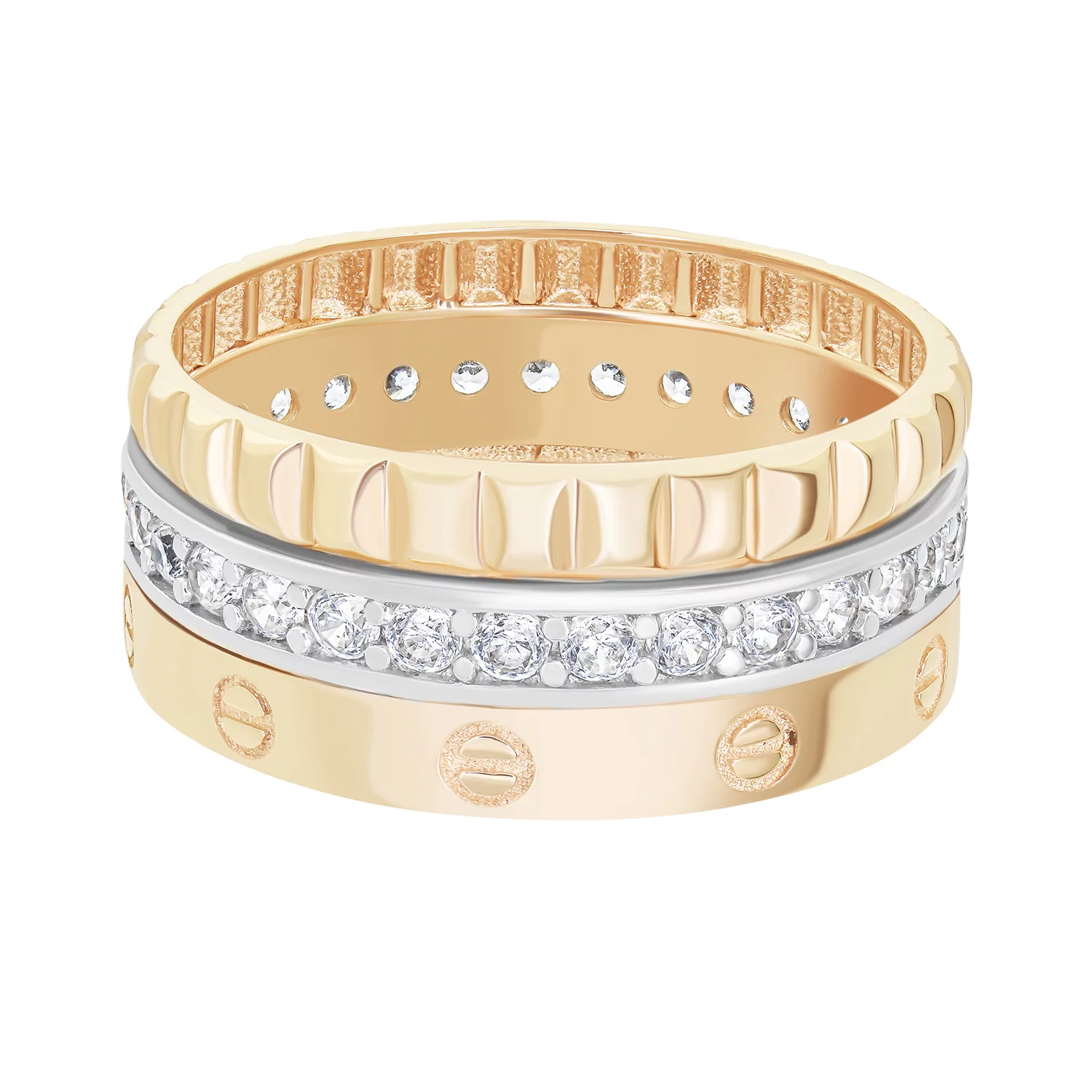 Каблучка в червоному та білому золоті "Переплетіння" з фіанітами - 1743833