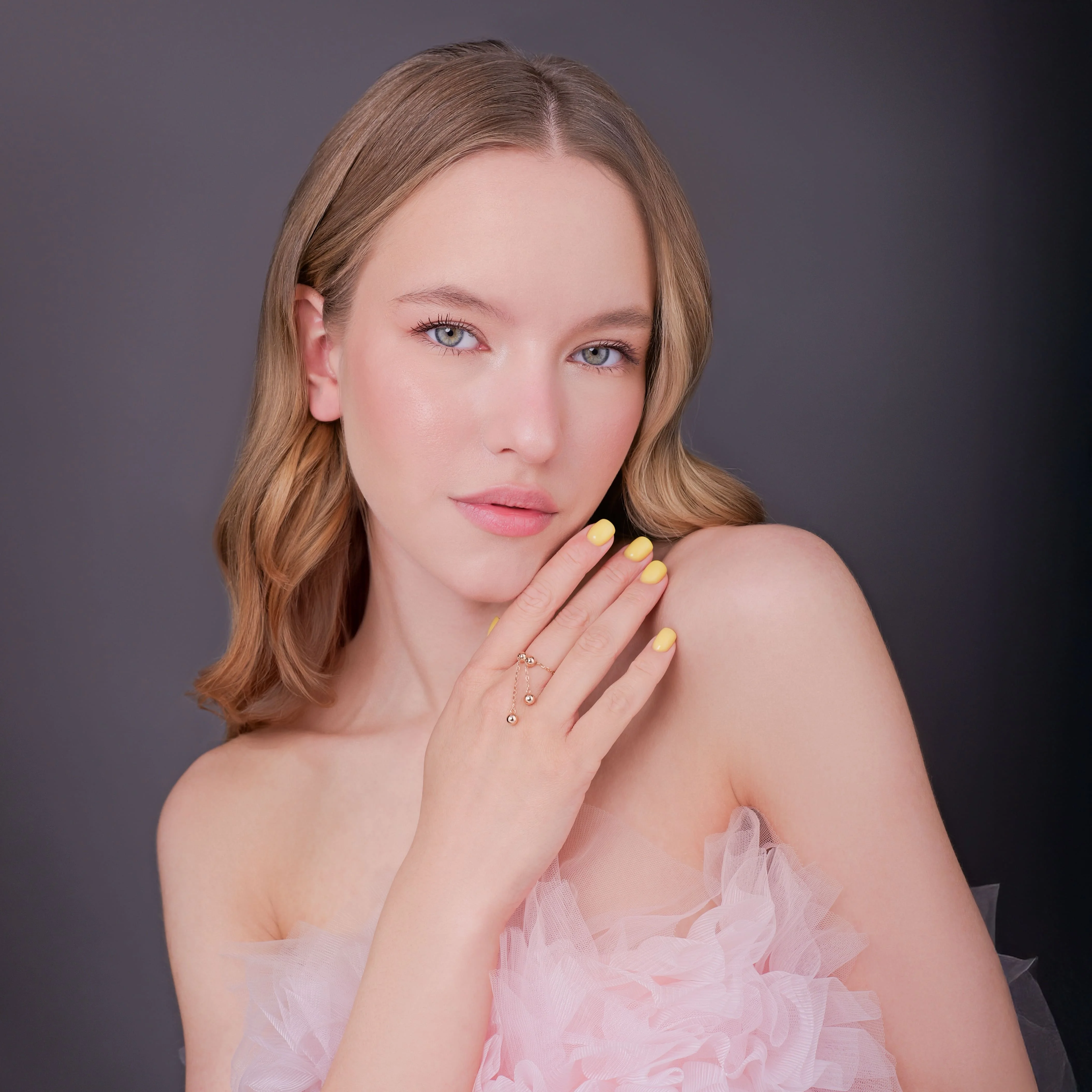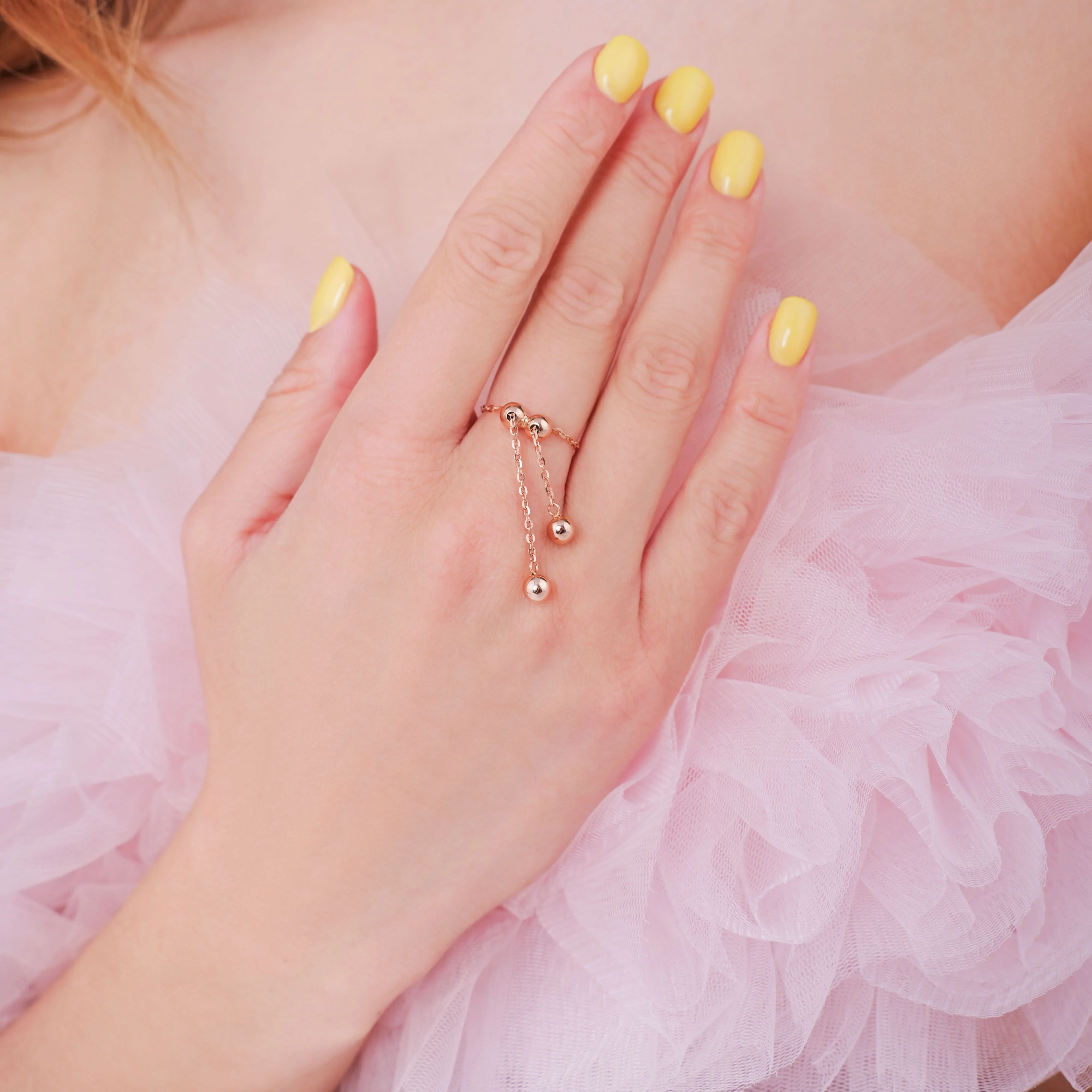 Каблучка-ланцюжок "Кульки" з підвісом у червоному золоті - 1992466