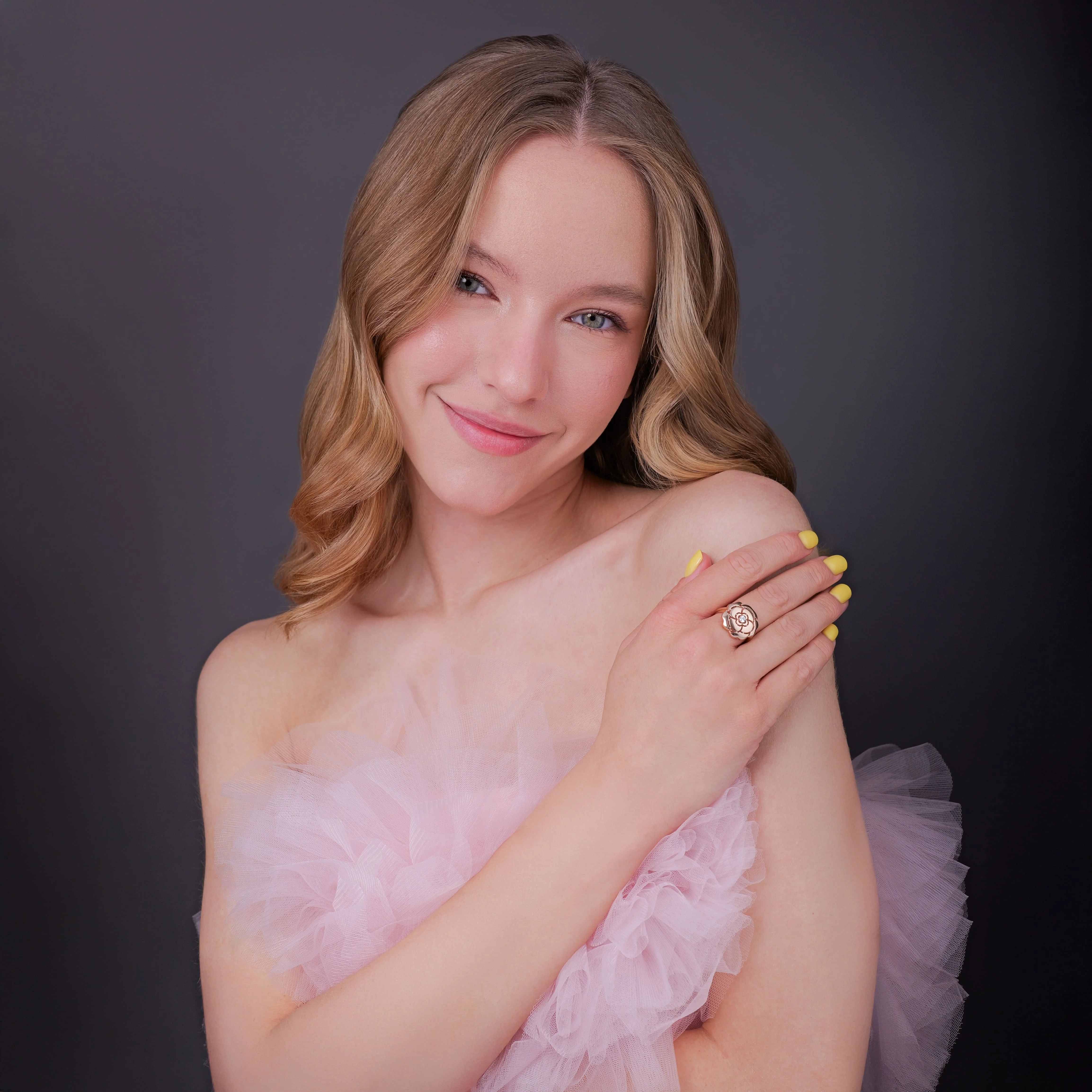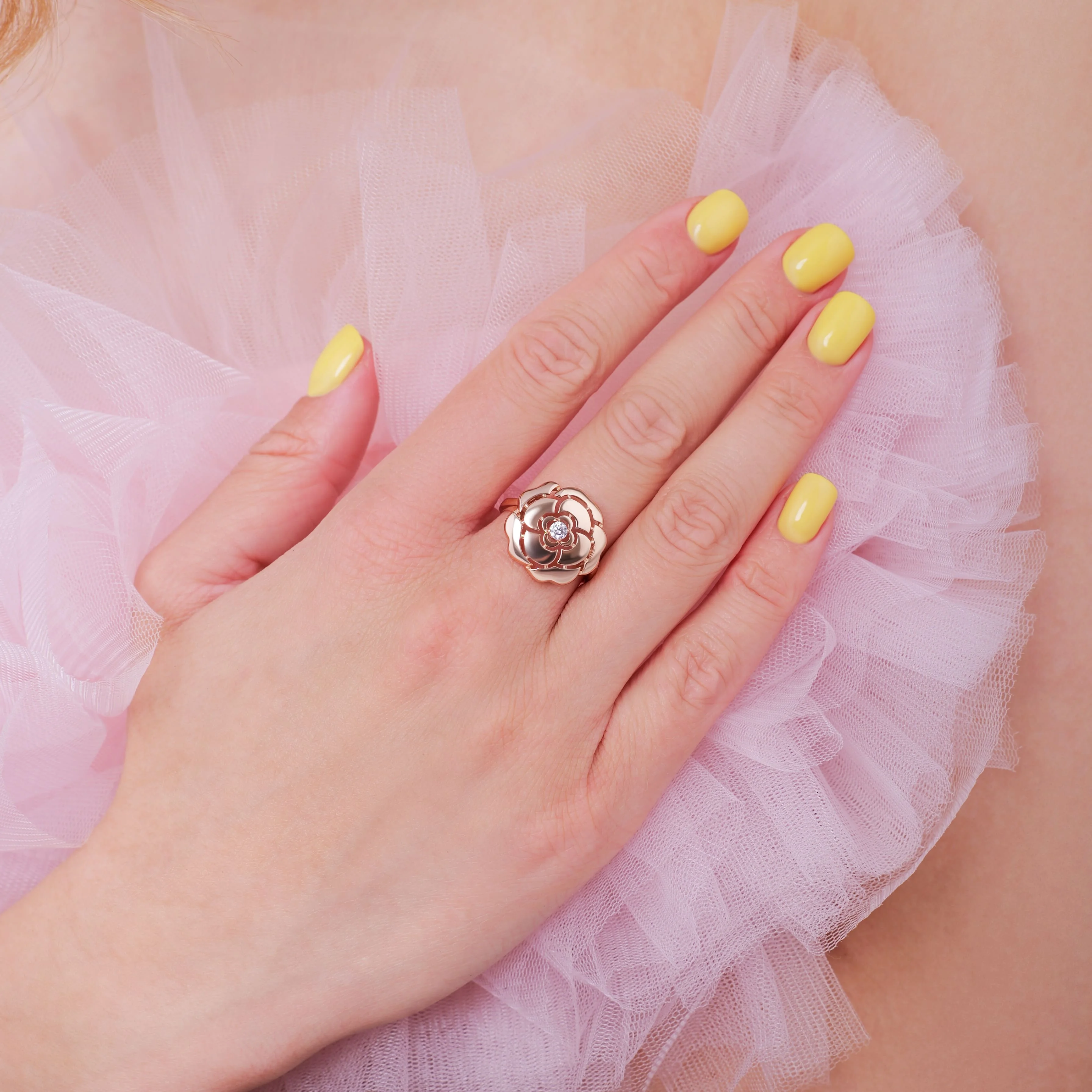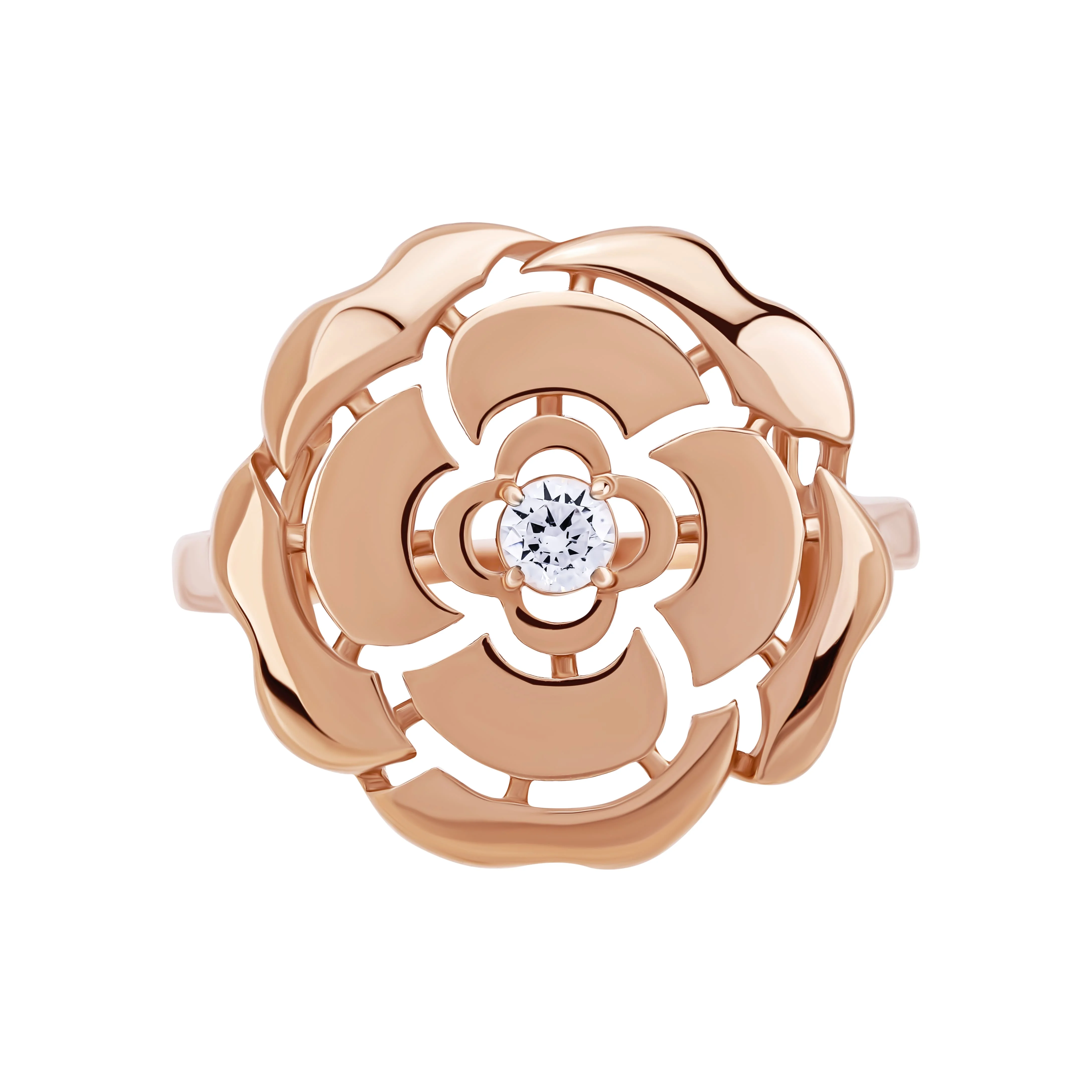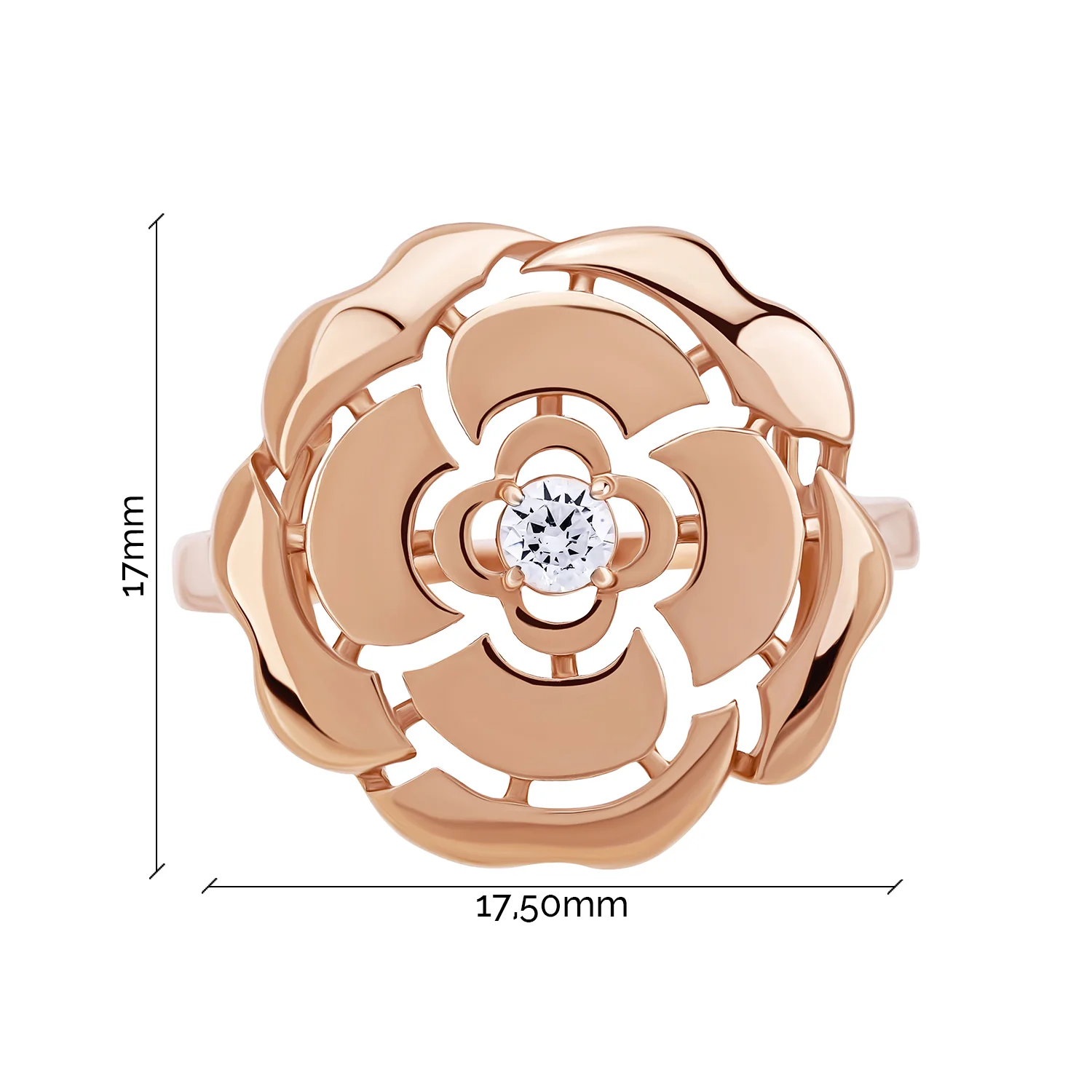 Каблучка "Квітка" з фіанітом у червоному золоті - 1992471