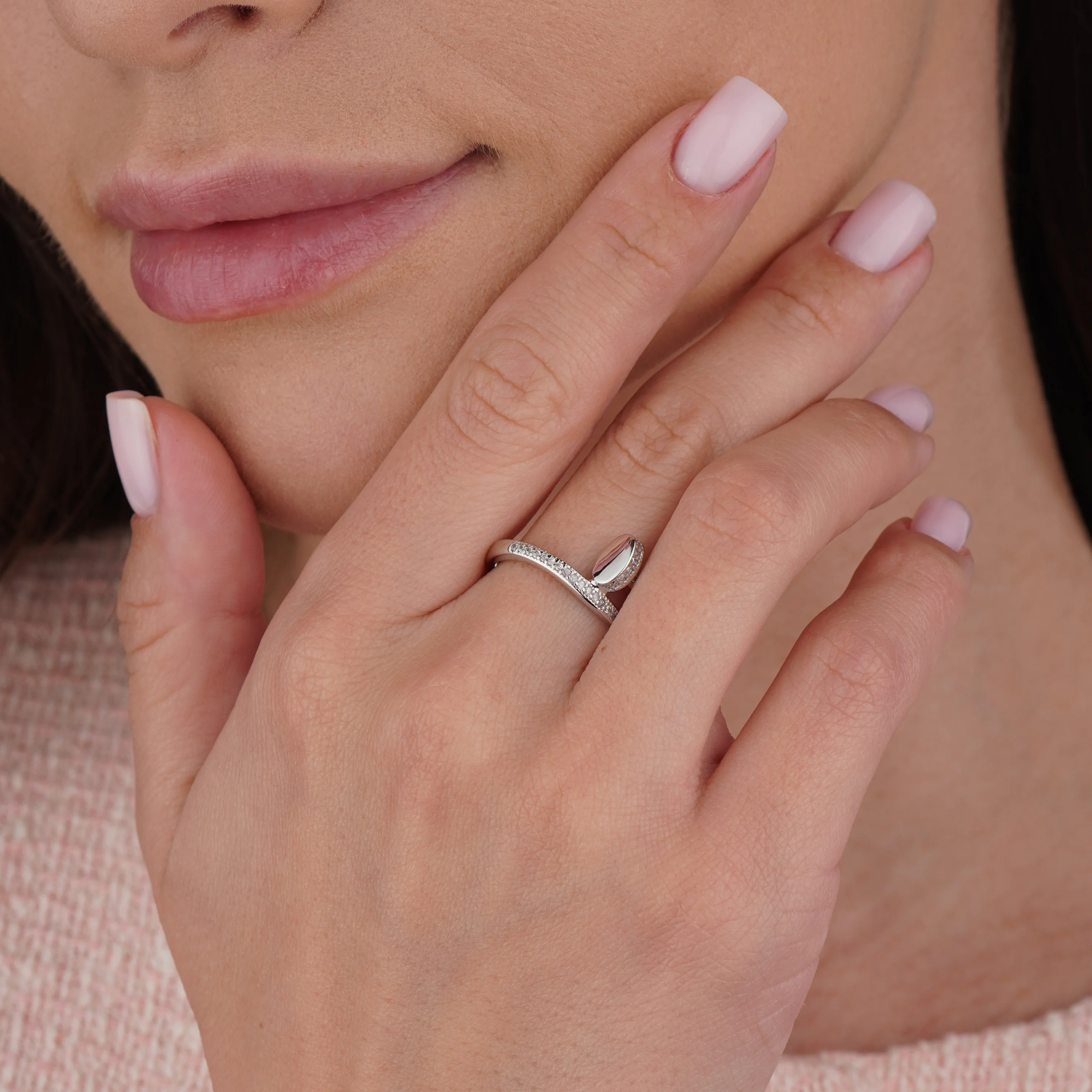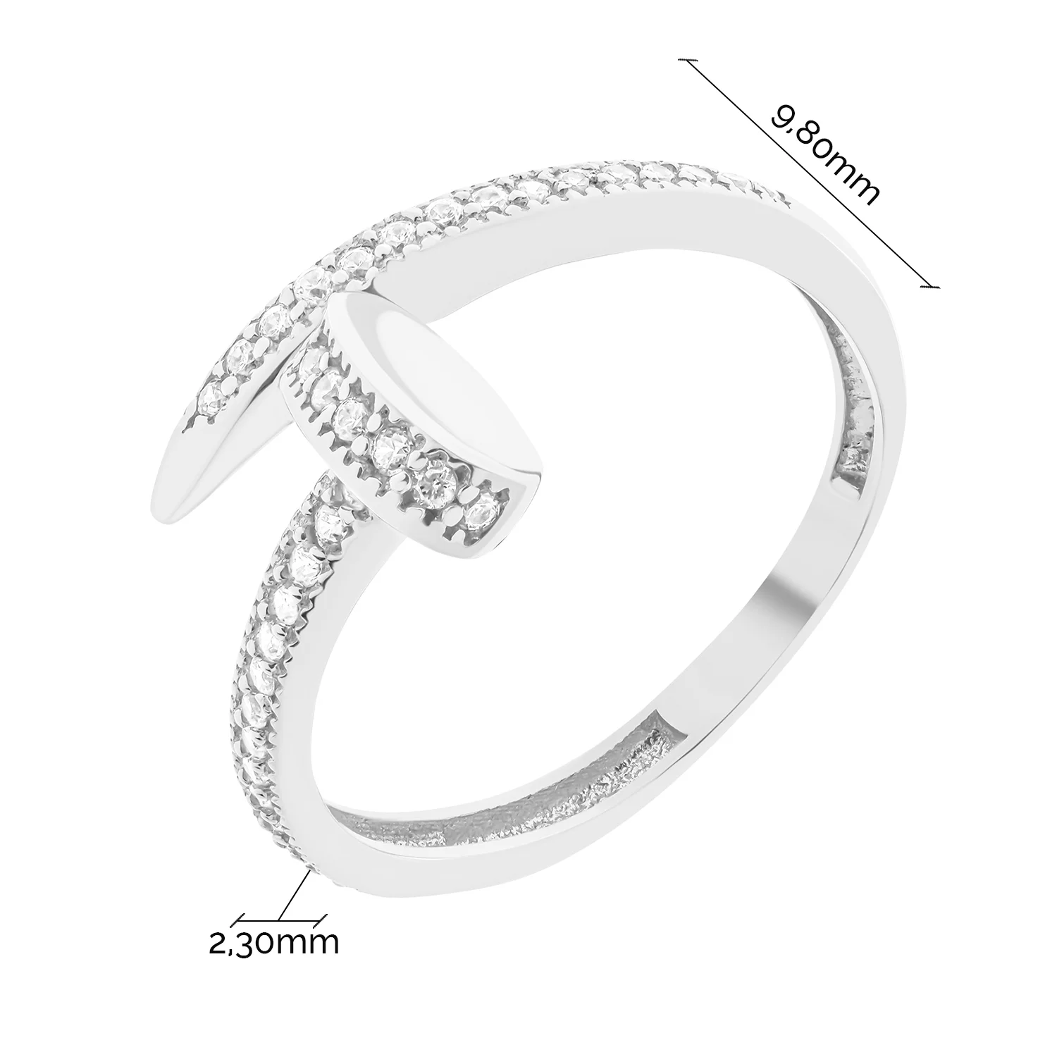 Каблучка в білому золоті "Цвях" з фіанітами - 1607351