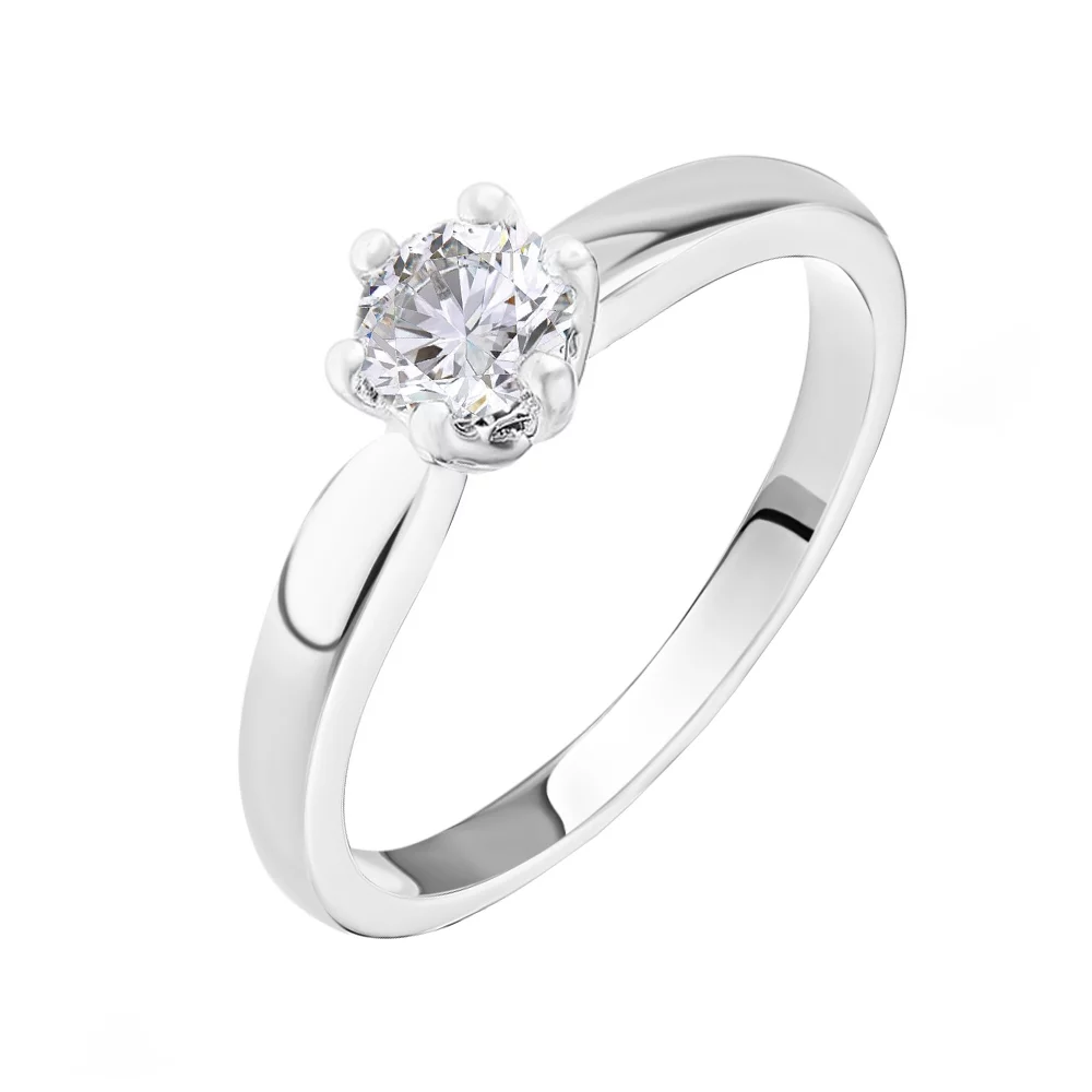 Каблучка з білого золота 585 проби, прикрашена діамантом круглого огранювання, — ідеальний вибір для особливого моменту, наприклад, заручин. Вона стане символом вічного кохання та відданості. Шикарний камінь надає виробу вишуканого вигляду, роблячи його гідним вибором для жінки, яка цінує класику та елегантність. Блиск стане нагадуванням про особливий момент життя. Прикраса доповнить будь-який образ — діловий, повсякденний, святковий. Підкреслить гарний смак, легко комбінуватиметься із сережками та іншими виробами схожого стилю.