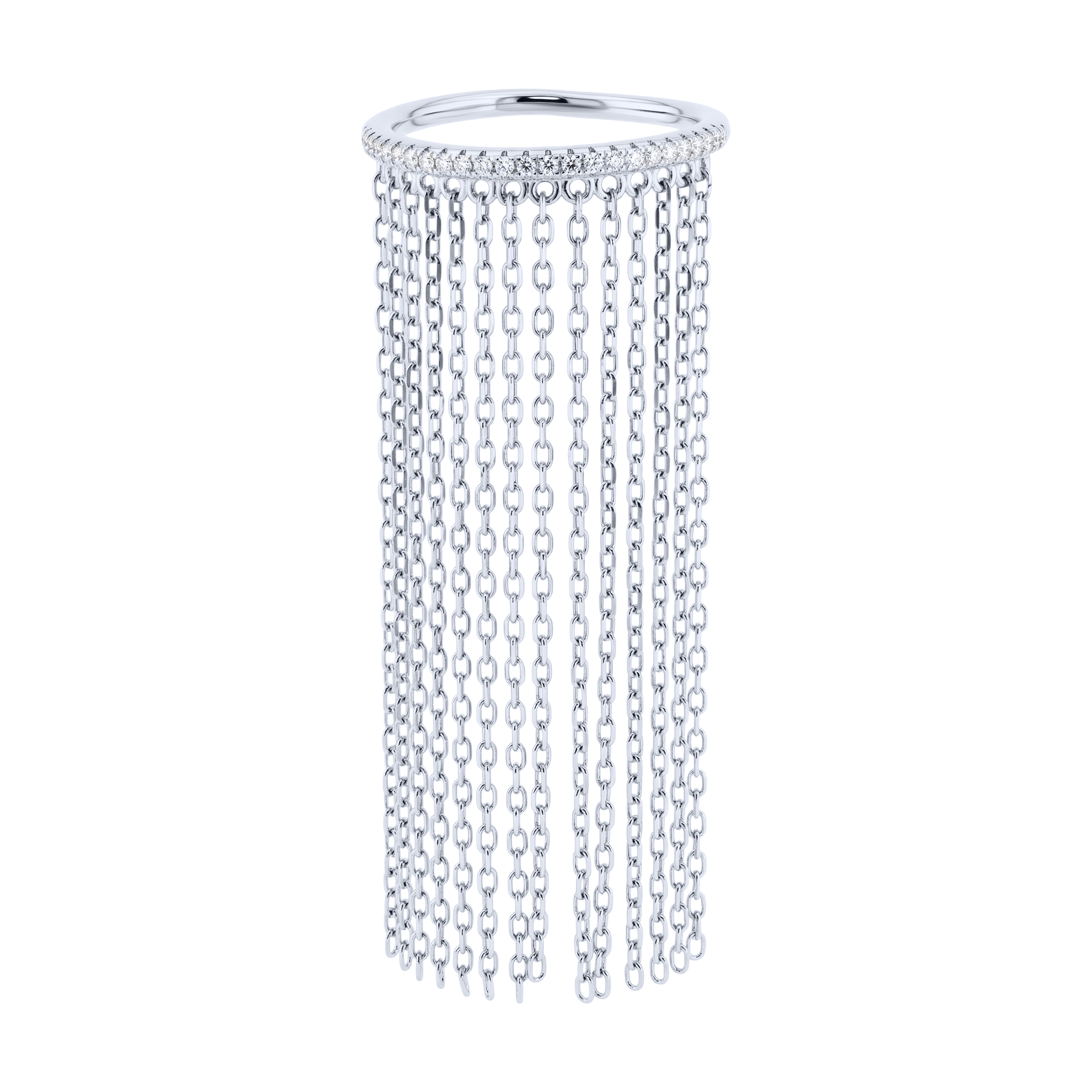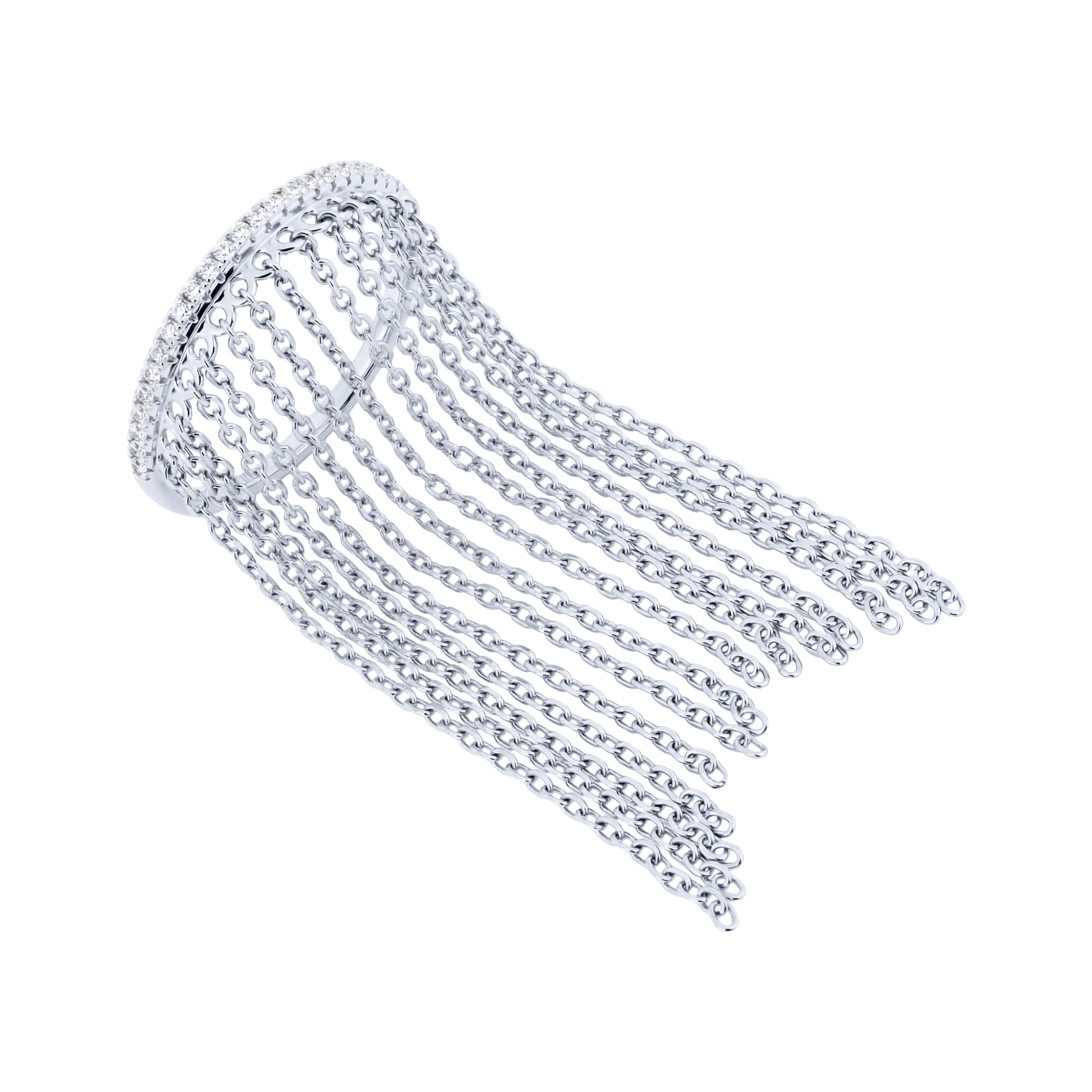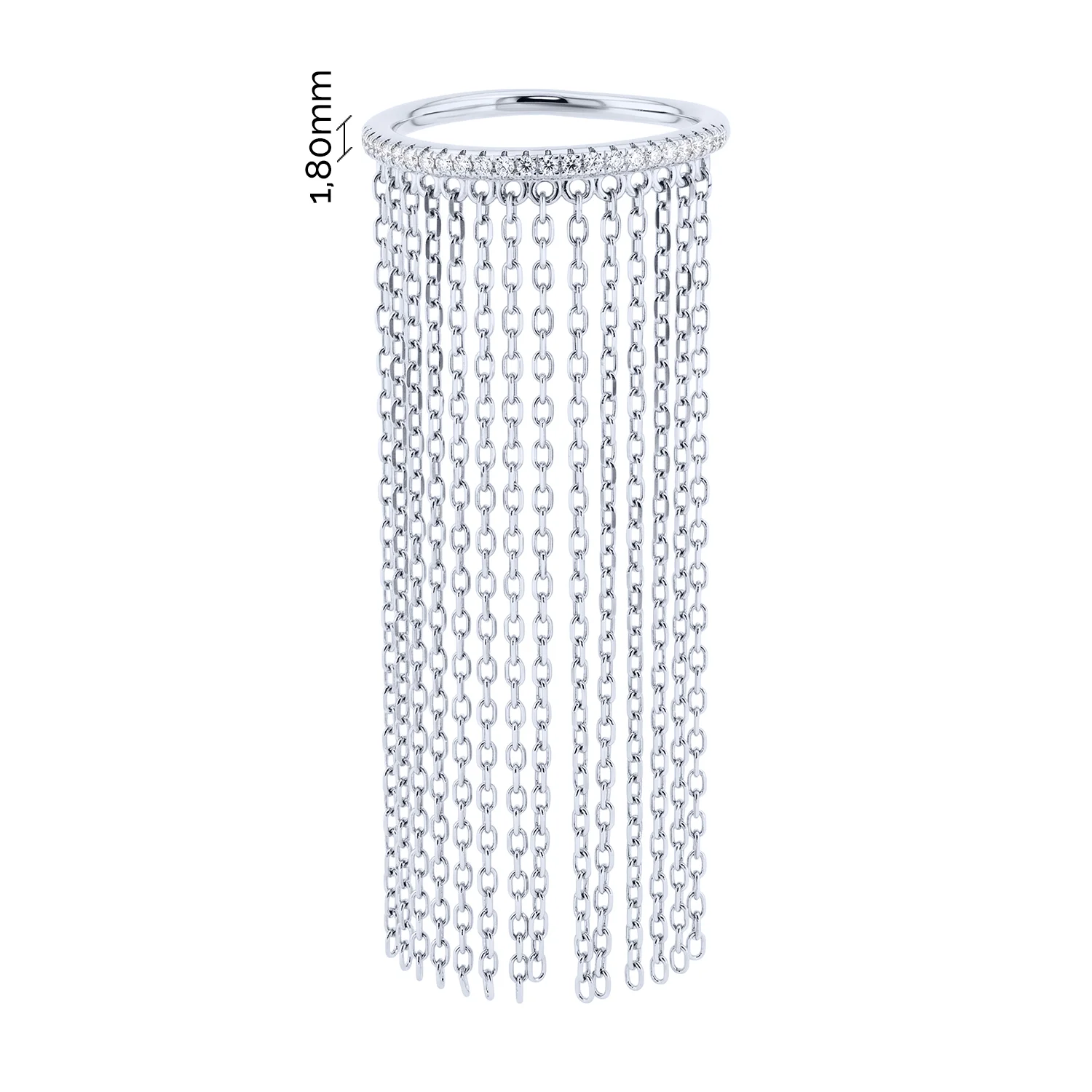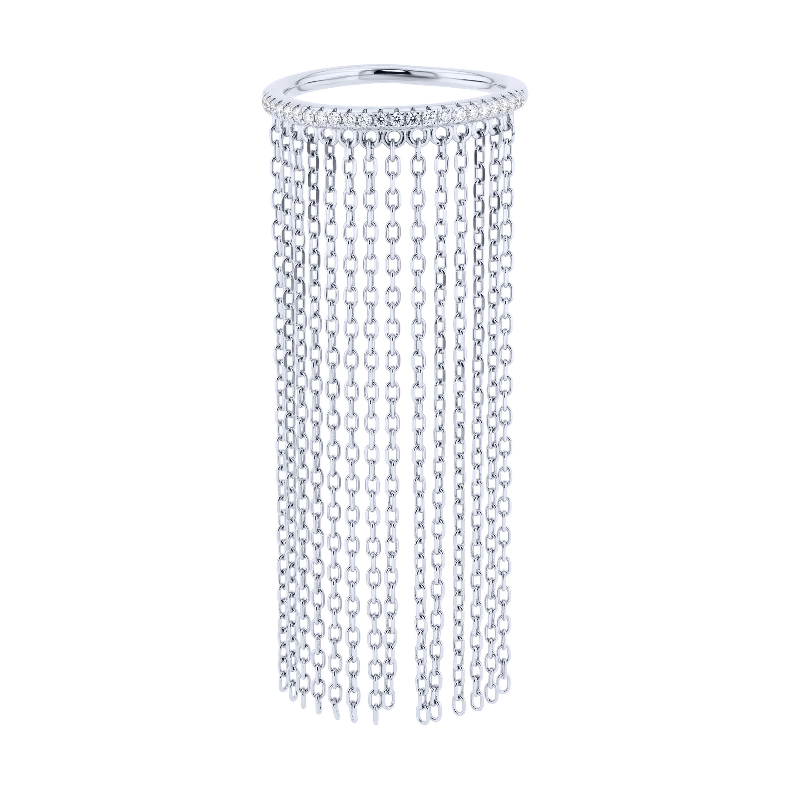 Каблучка срібна з доріжкою фіанітів та ланцюжками - 2214500