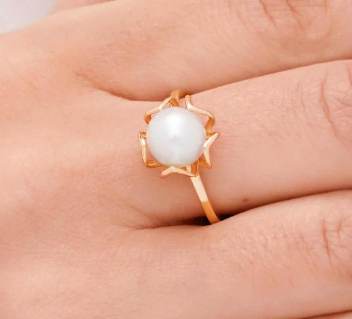Каблучка в мінімалістичному стилі з червоного золота з фіанітом - 1867186
