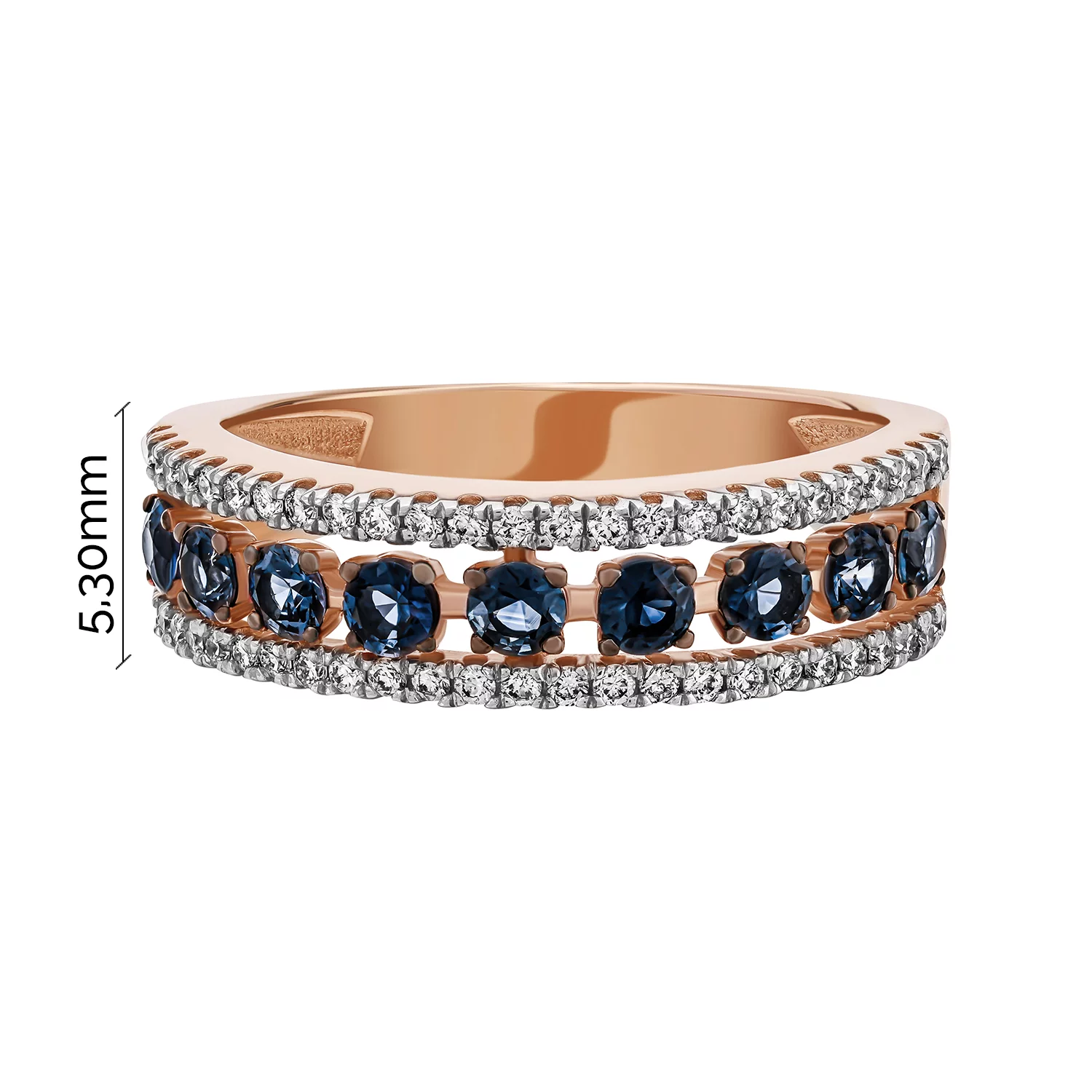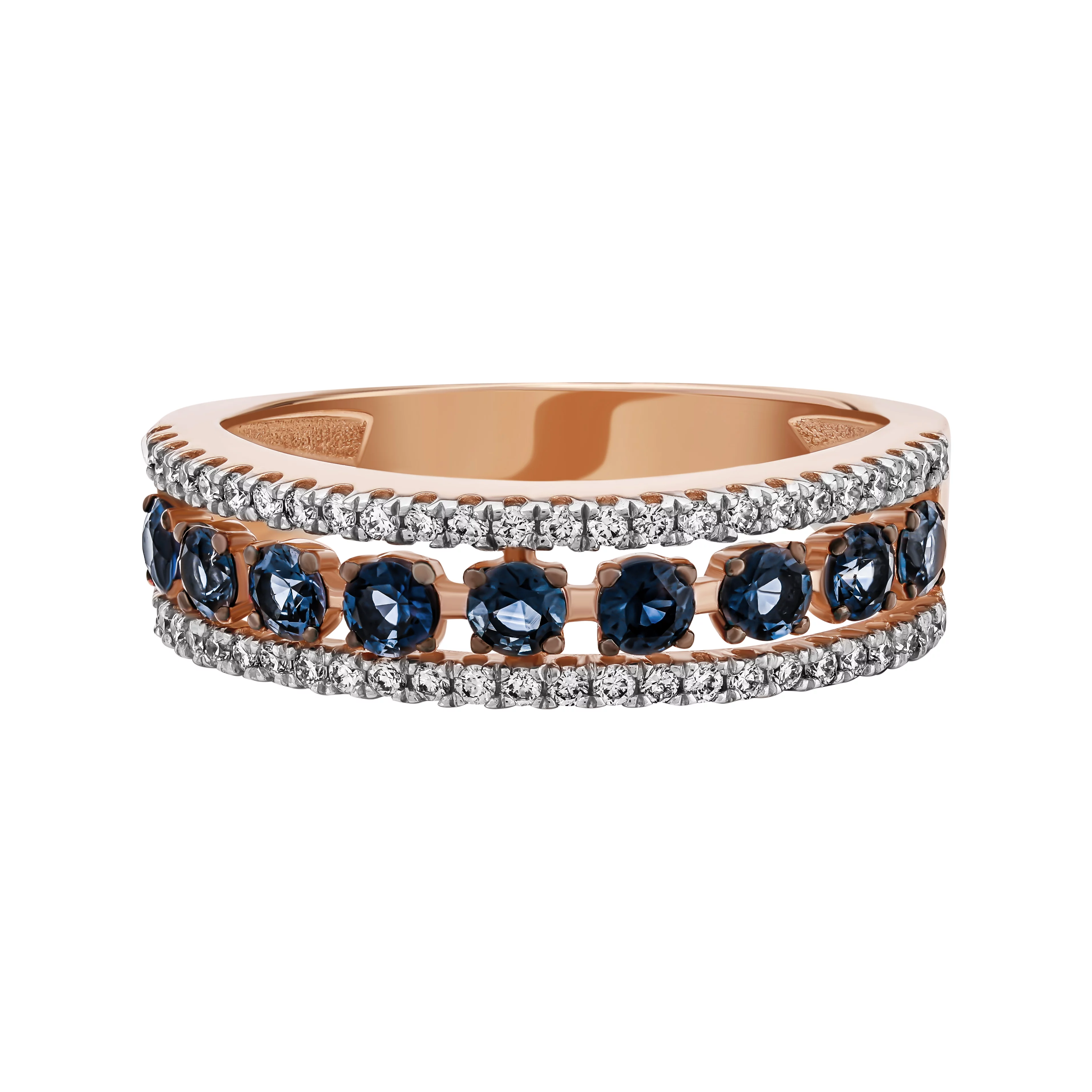 Каблучка в червоному золоті з сапфіром і доріжкою діамантів - 1731829