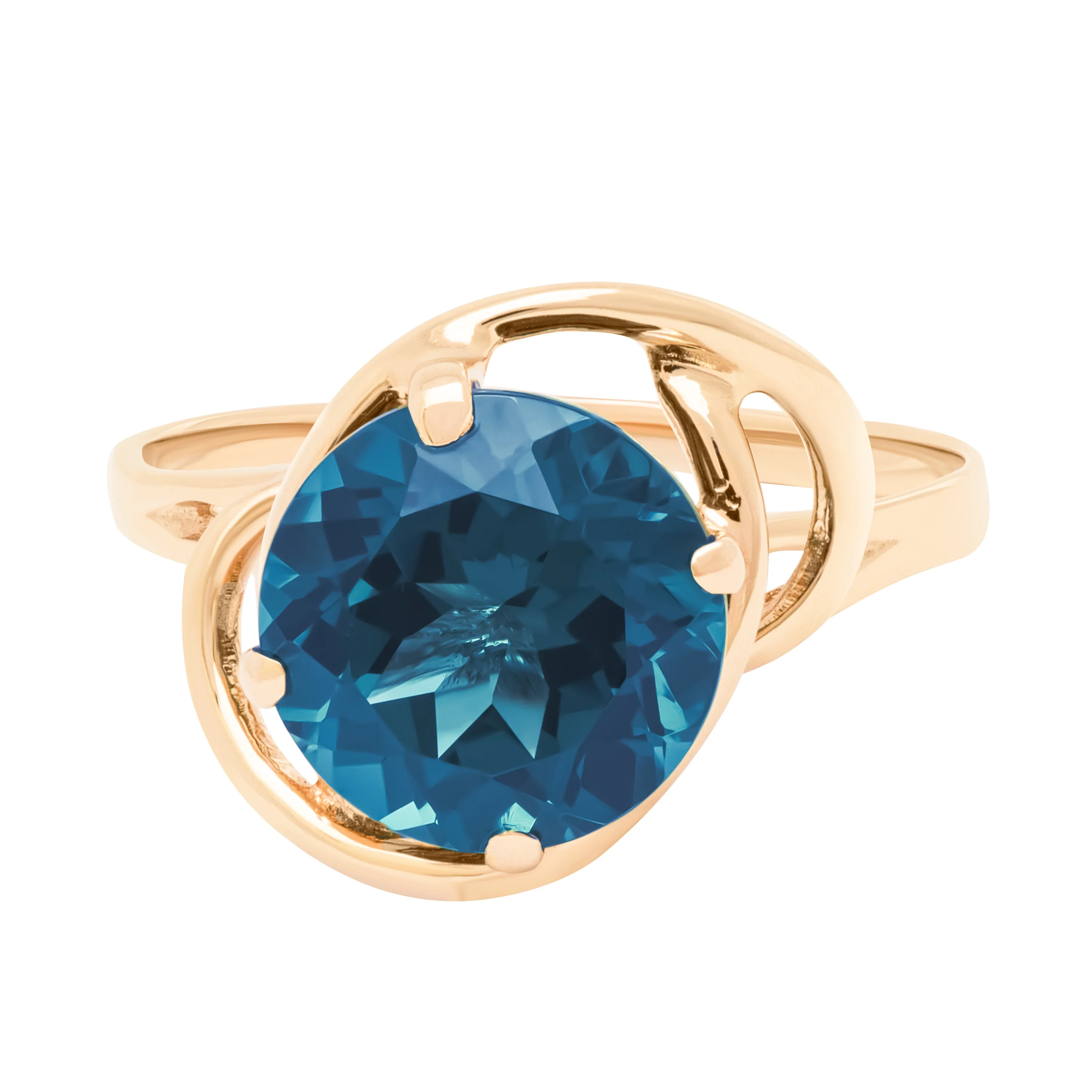 Стильна каблучка у геометричному стилі в червоному золоті з топазом та фіанітами - 1939740