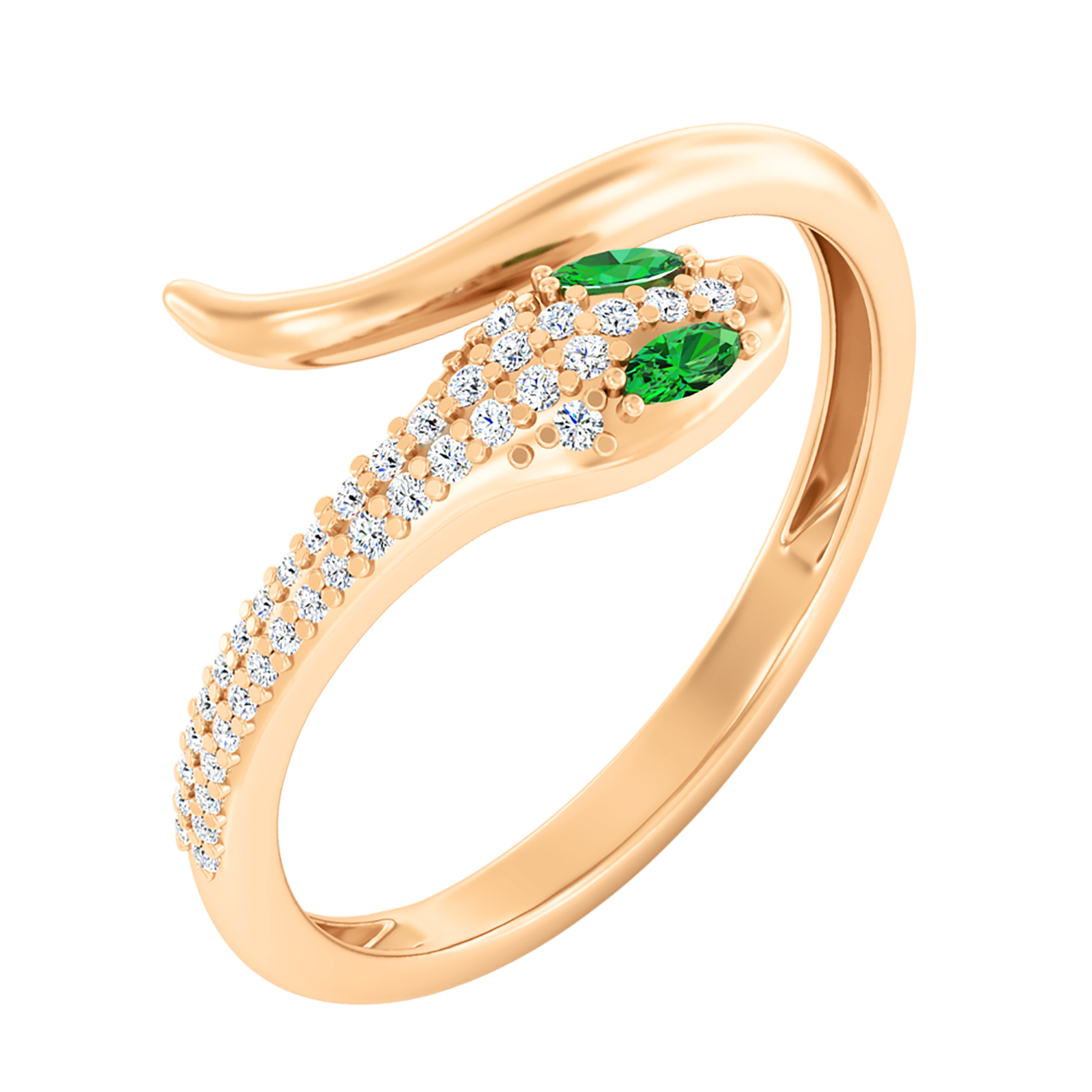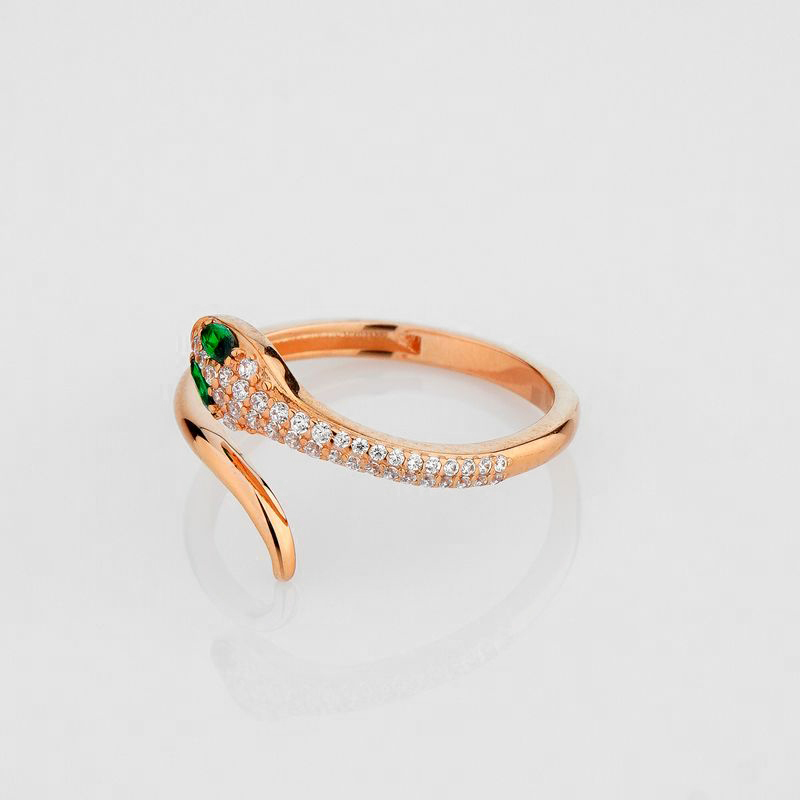 Незамкнена каблучка "Змія" із червоного золота з фіанітами - 2125777