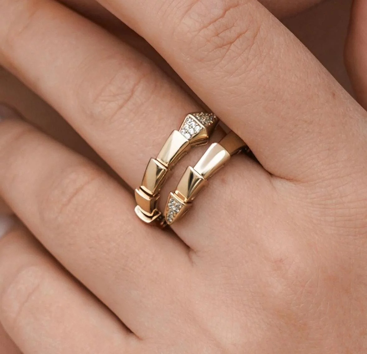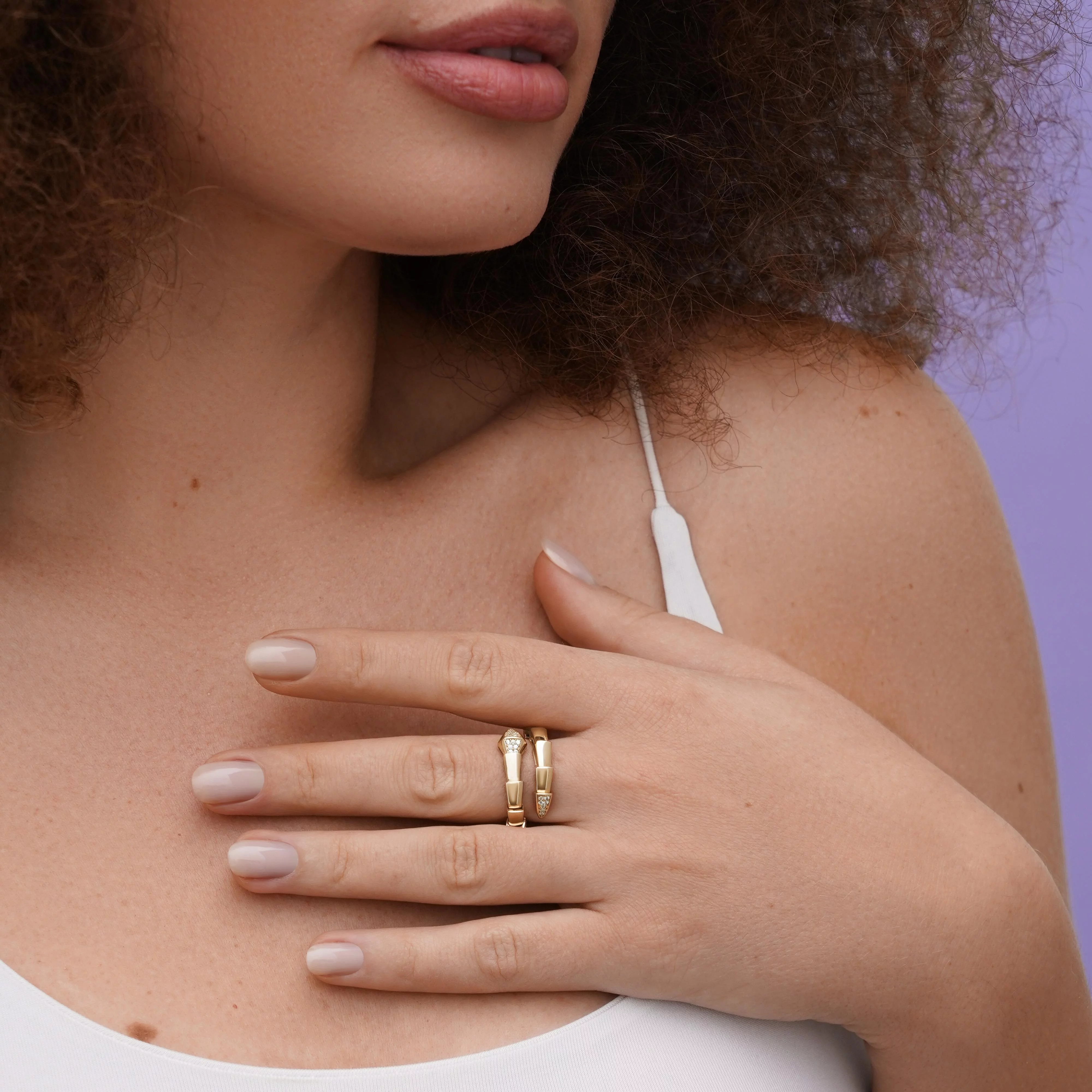 Каблучка у формі змії з червоного золота з емаллю і фіанітами - 1581121