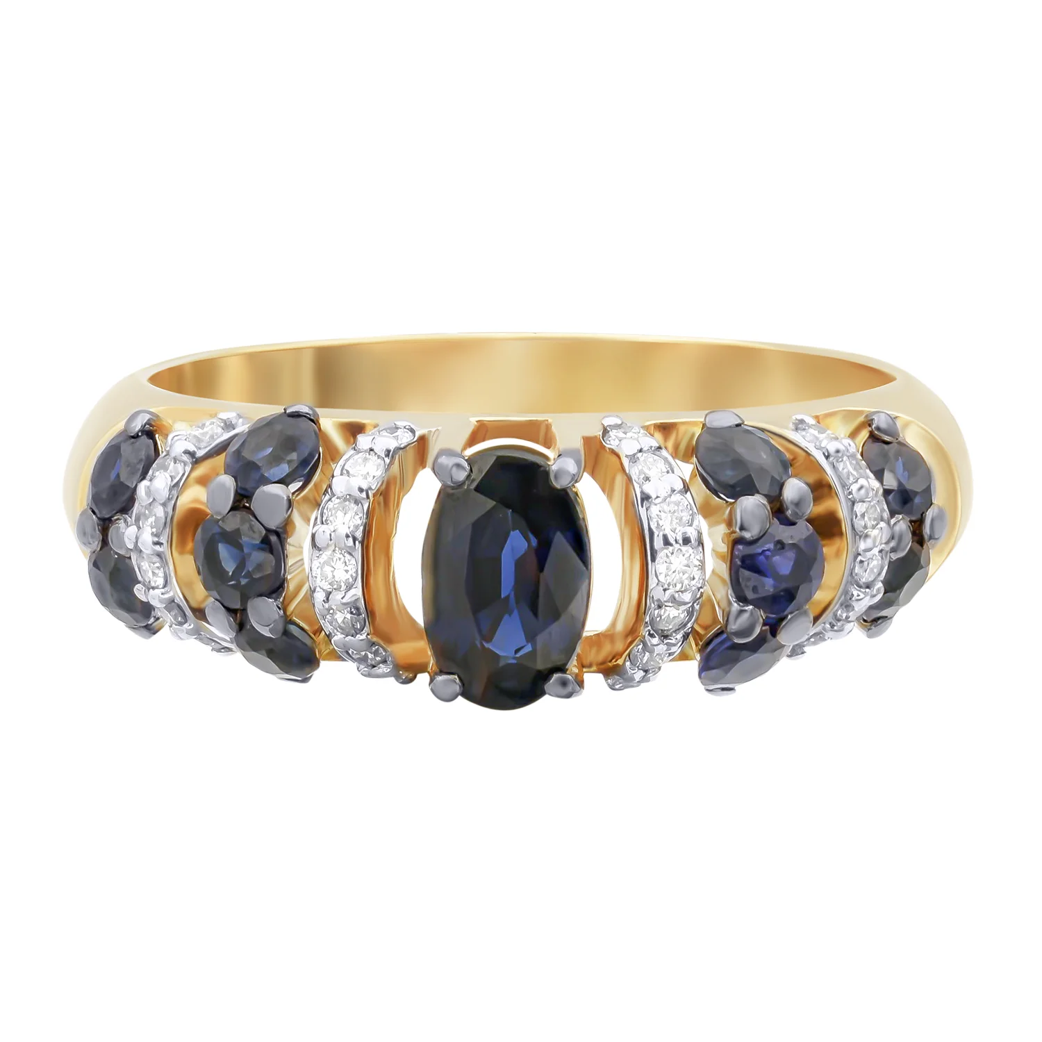Каблучка в червоному золоті з сапфіром і доріжкою діамантів - 1731829