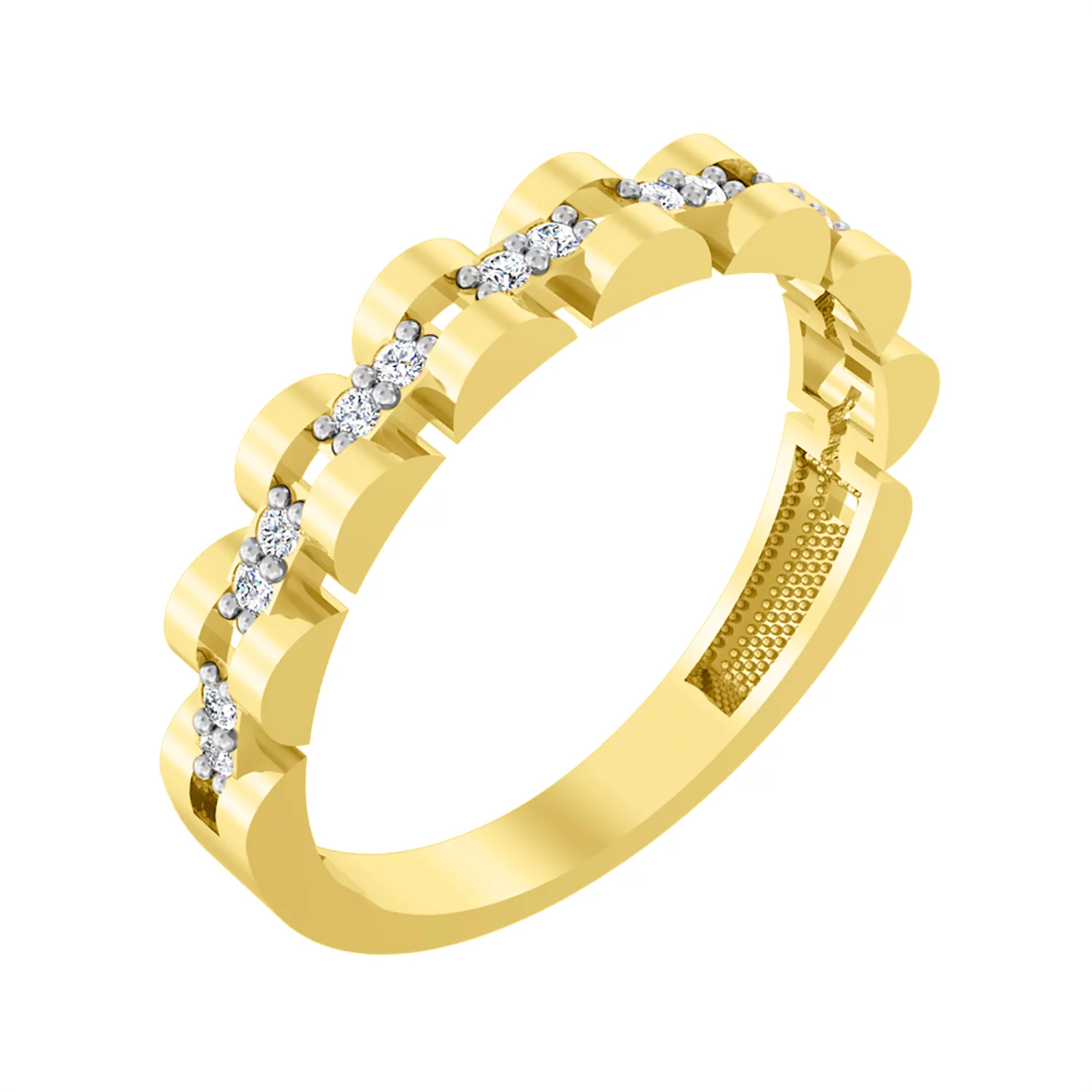 Каблучка з жовтого золота з доріжкою з фіанітів - 1873320