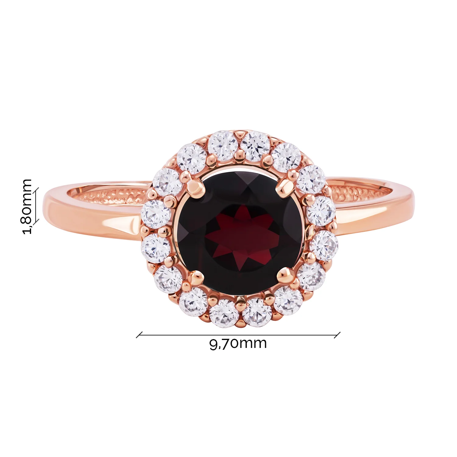 Каблучка з червоного золота з гранатом та фіанітами - 2086389