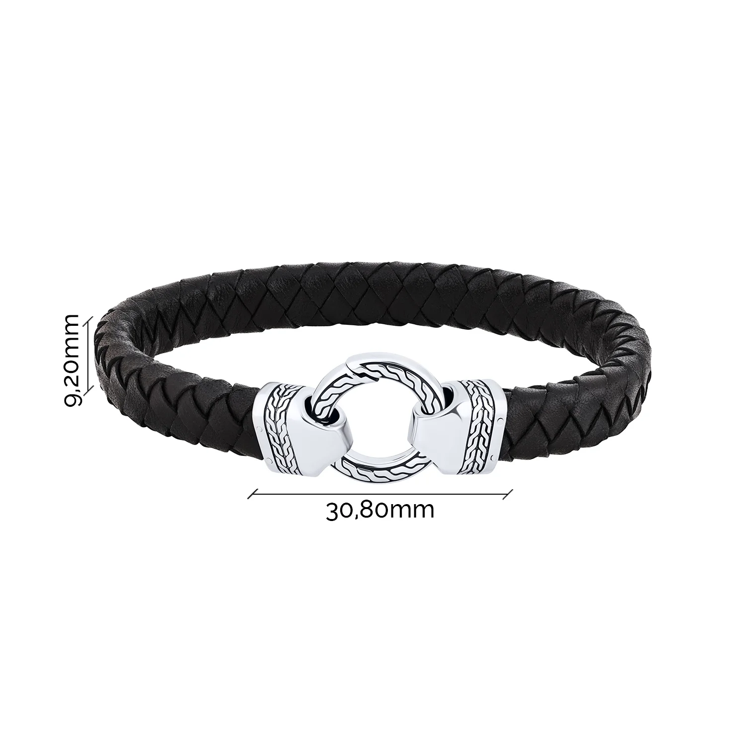 Шкіряний браслет зі срібною вставкою із чорнінням - 2112479