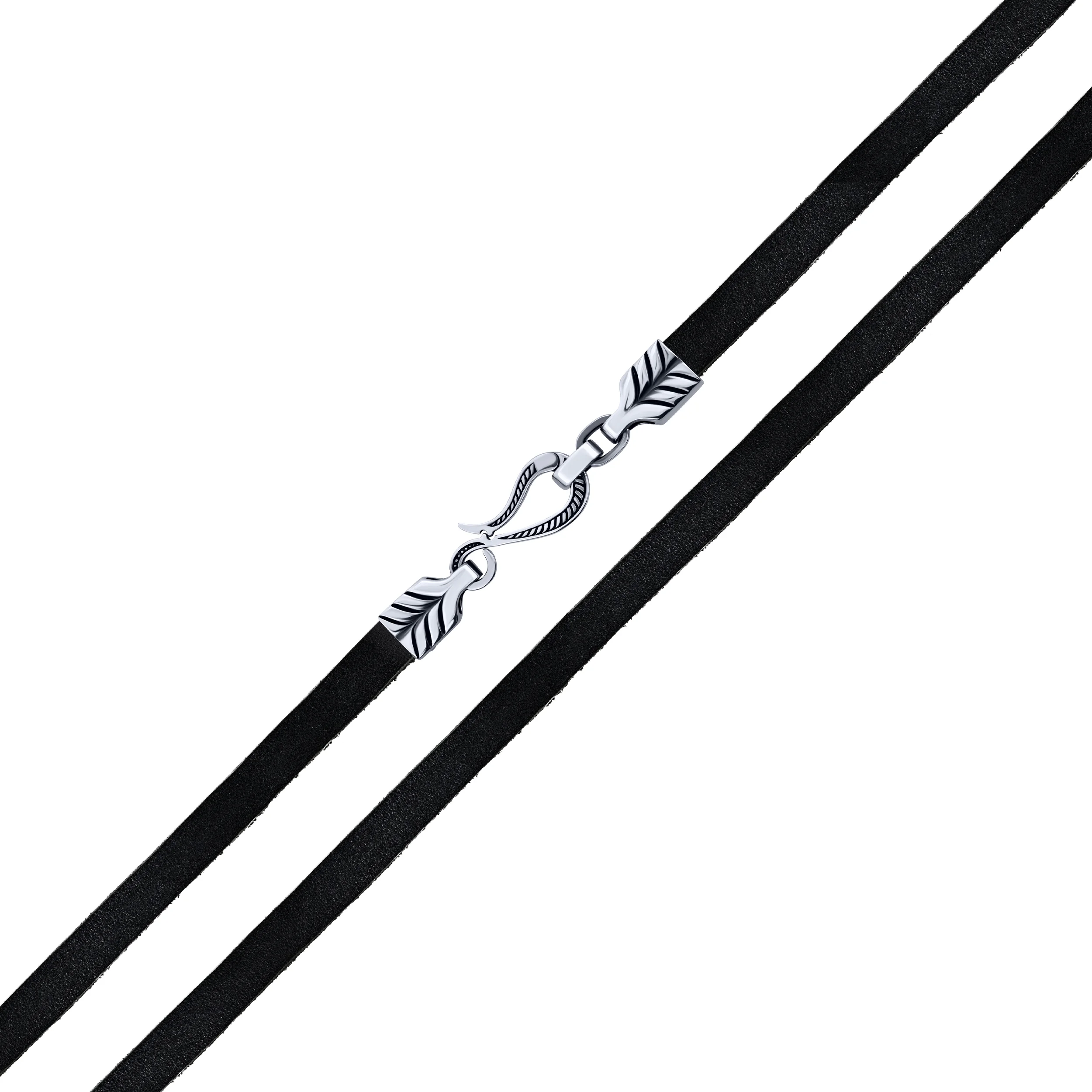 Шкіряний браслет зі срібними вставками та чорнінням - 2102030