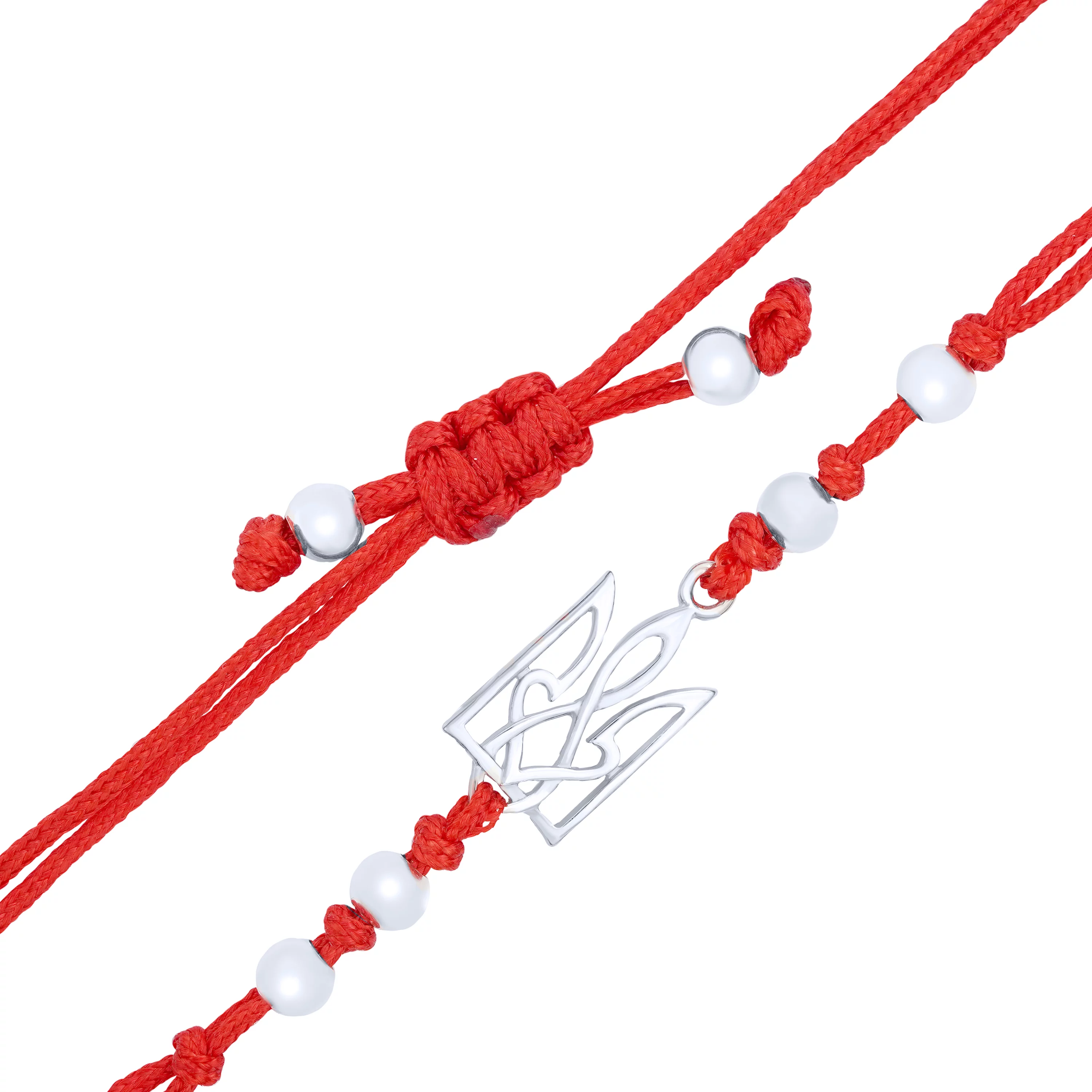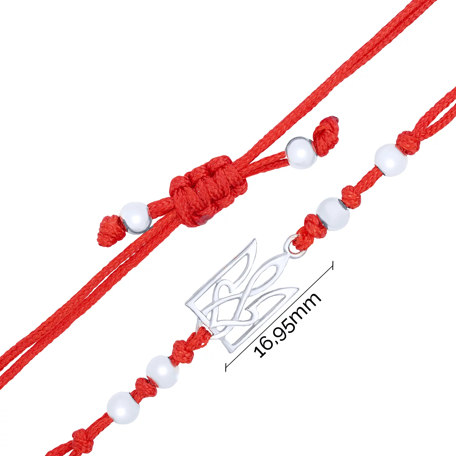 Браслет із синім і жовтим шовком та срібною вставкою "Тризуб-Герб України" - 1682731