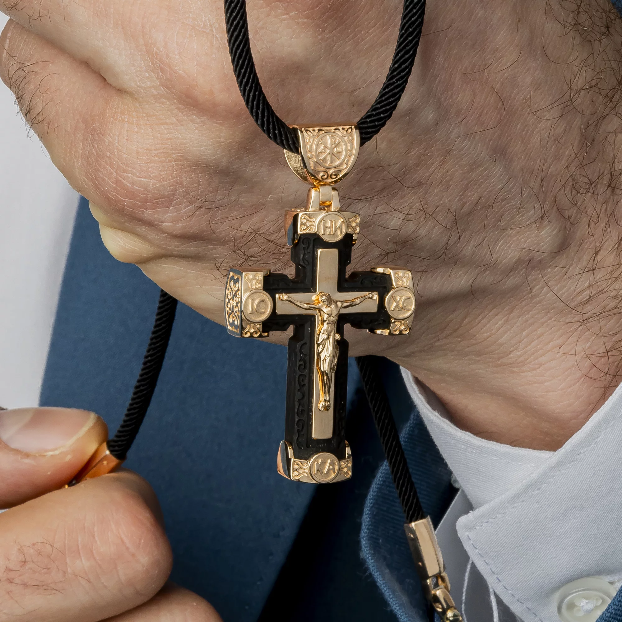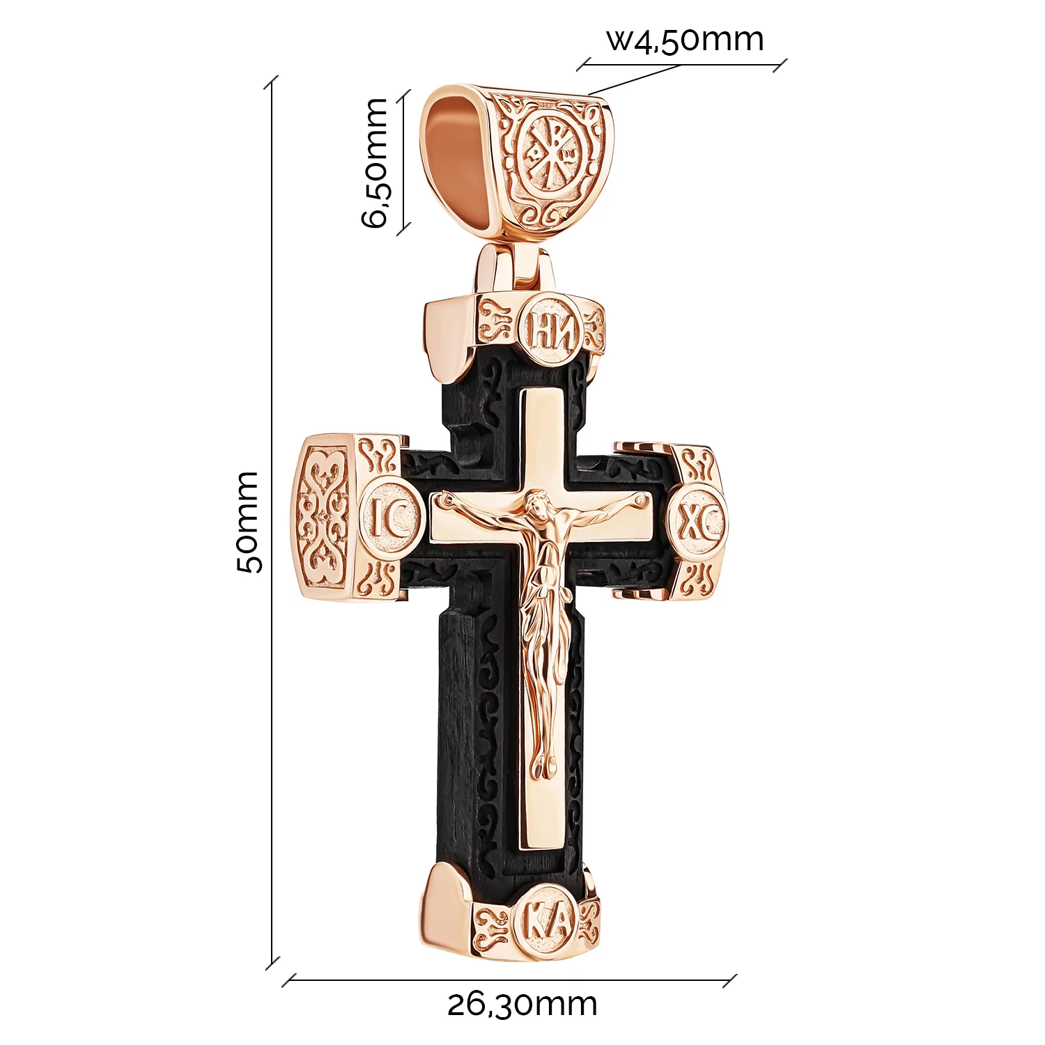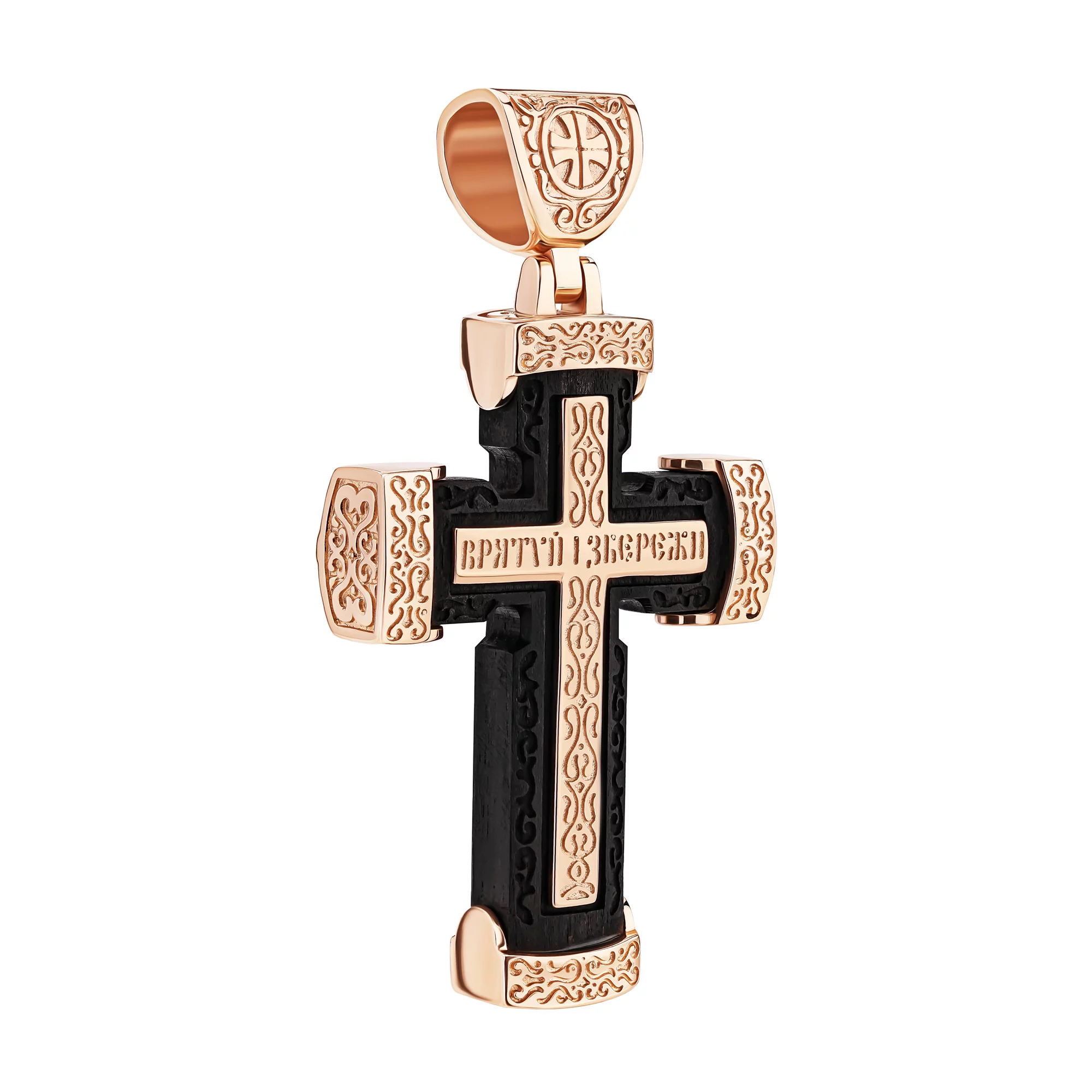 Елегантний хрестик "Ісус Христос" з червоного золота з чорнінням - 1916327