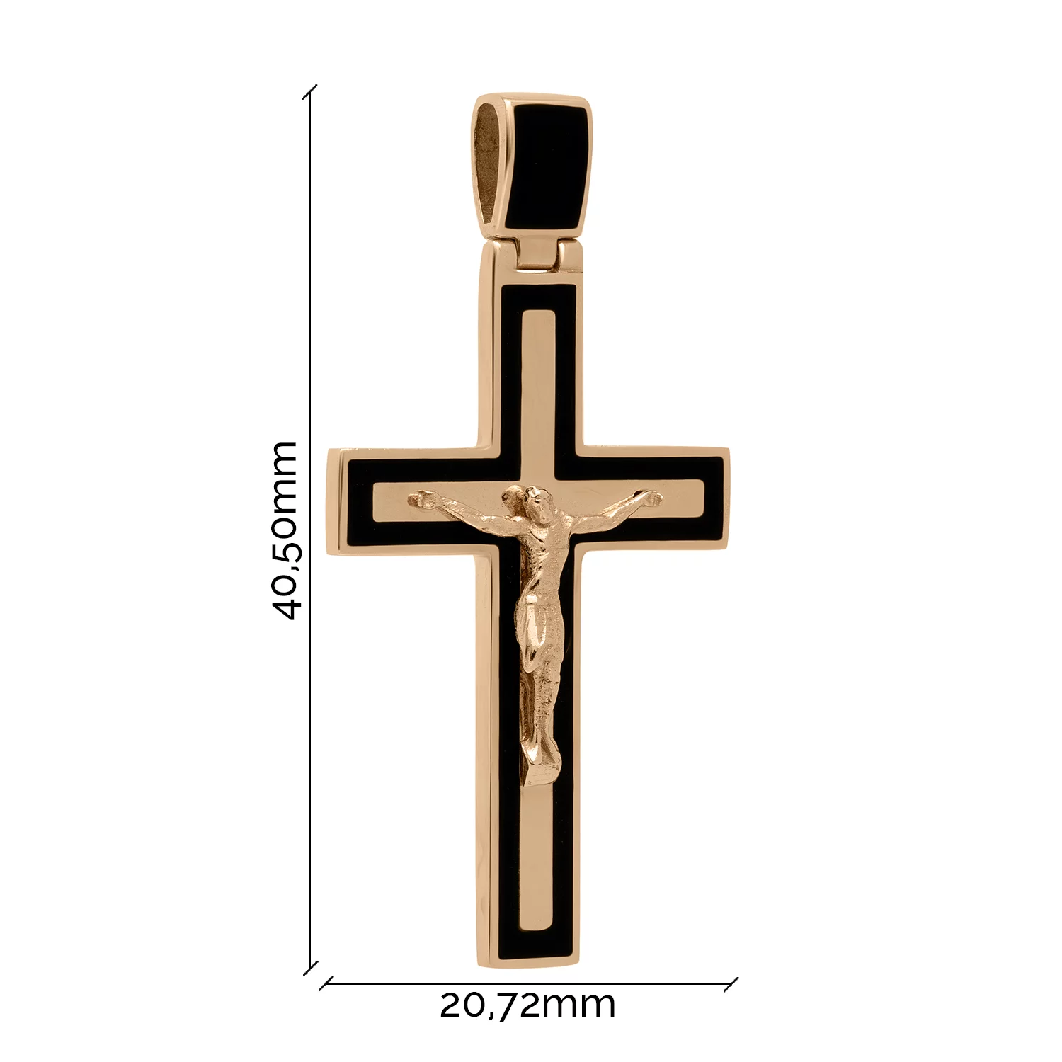 Хрест "Ісус Христос" з червоного золота з фіанітами і емаллю - 1614513