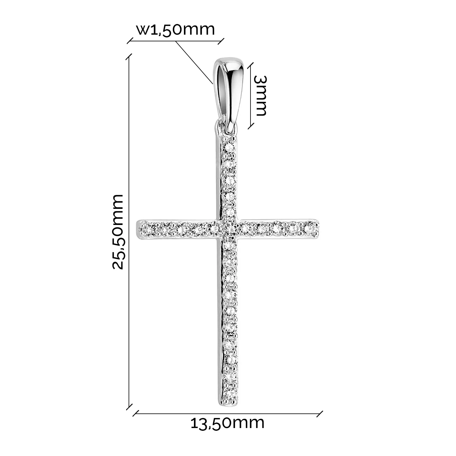 Стильний декоративний хрестик "Цвях" з білого золота з діамантами - 1871157