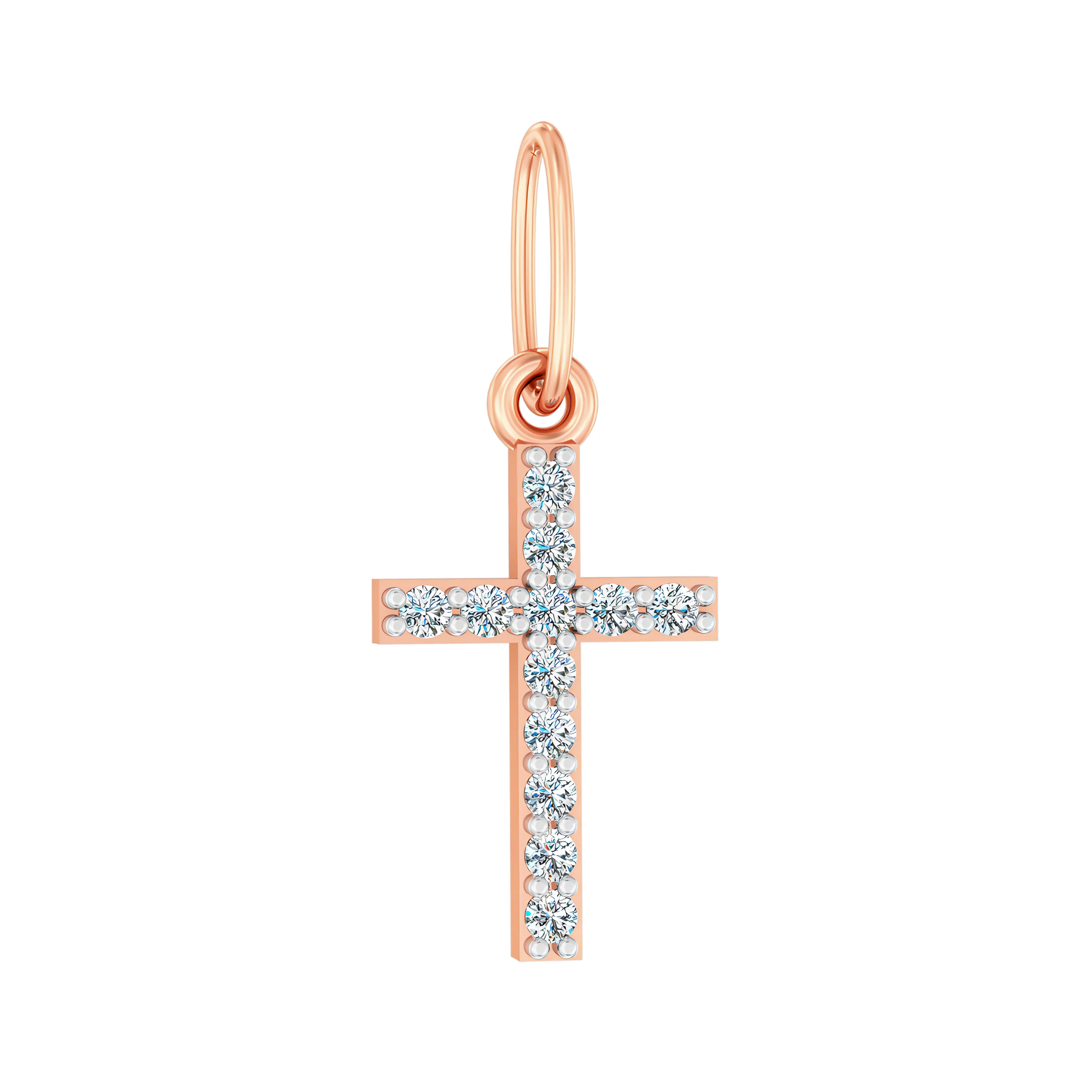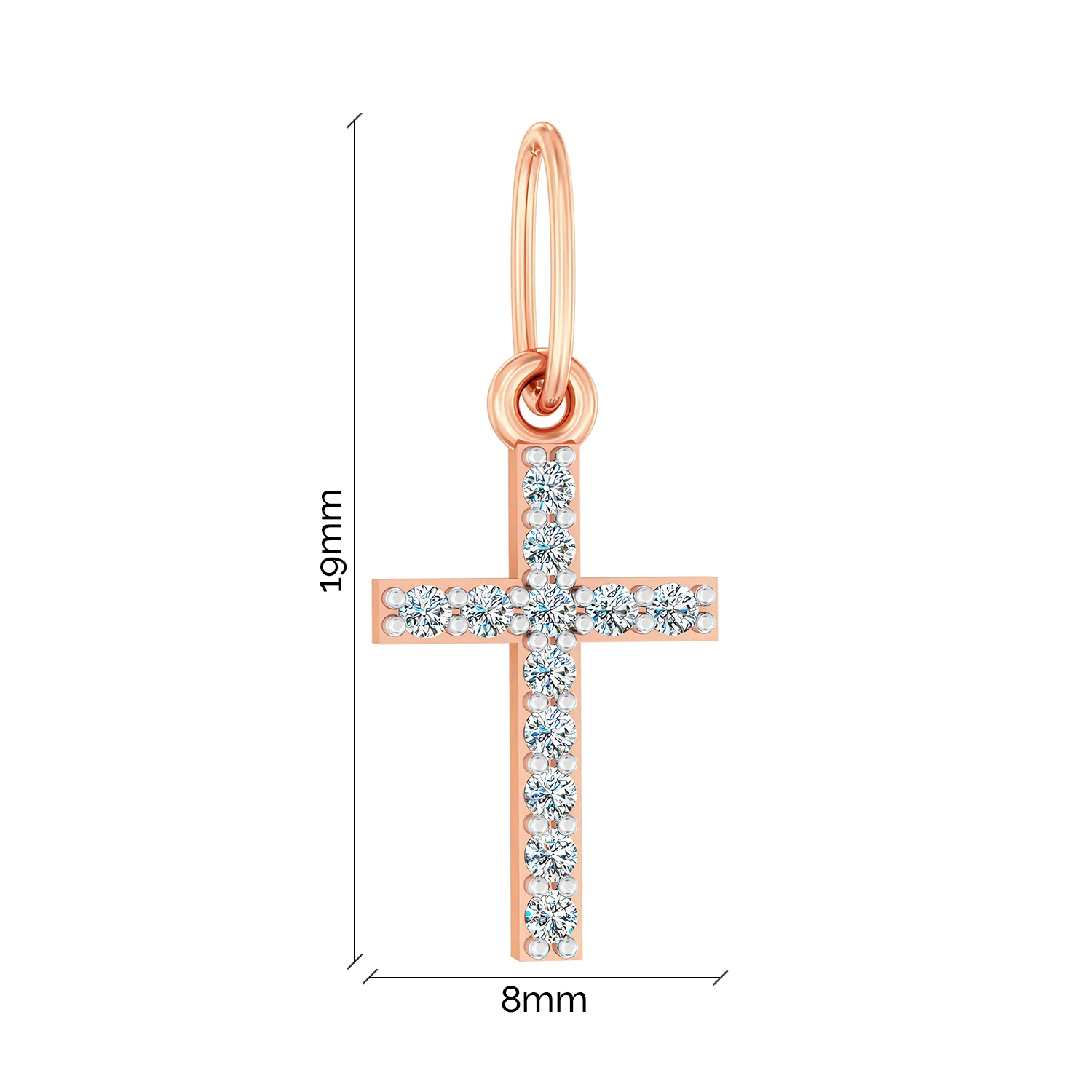 Хрестик декоративний із червоного золота з фіанітами - 2118657