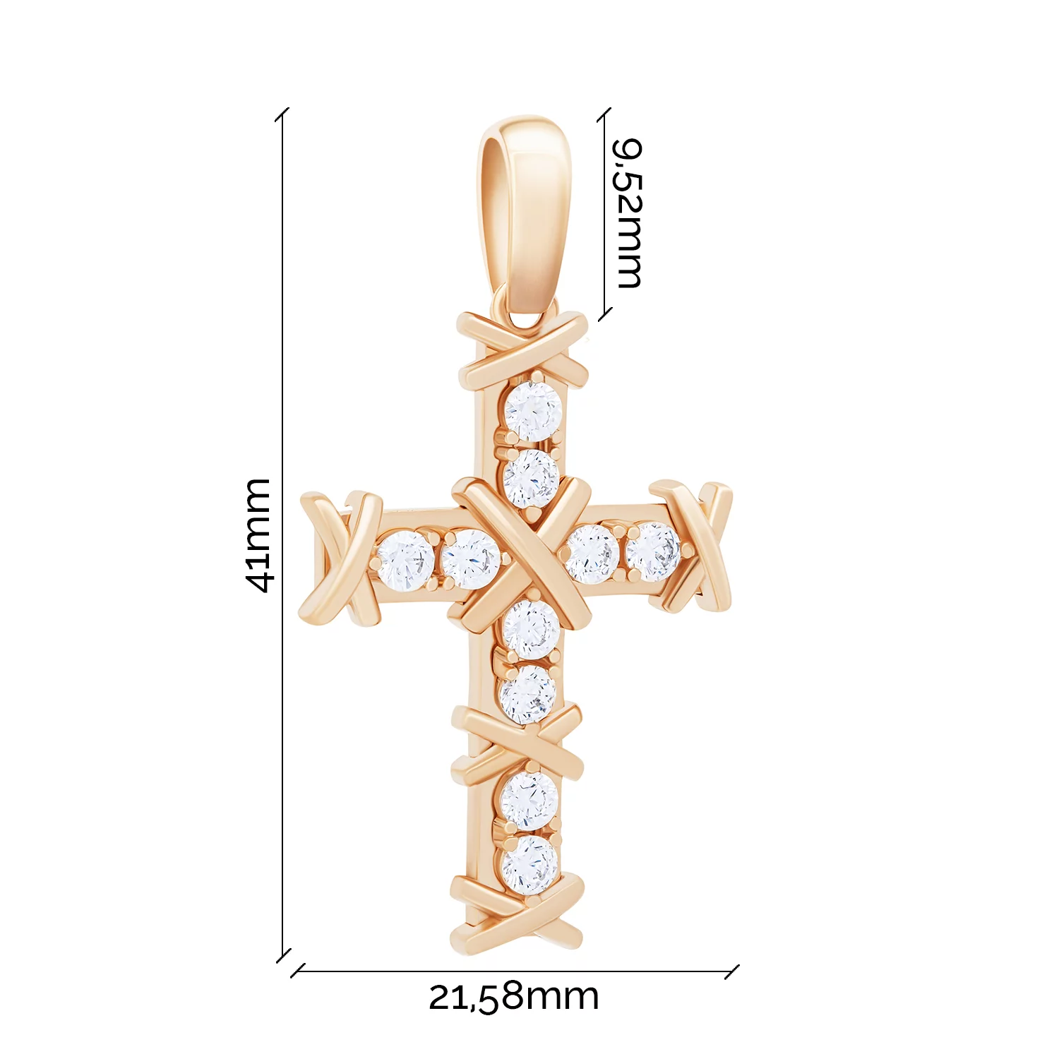 Декоративний хрестик із червоного золота з доріжкою фіанітів - 1545402