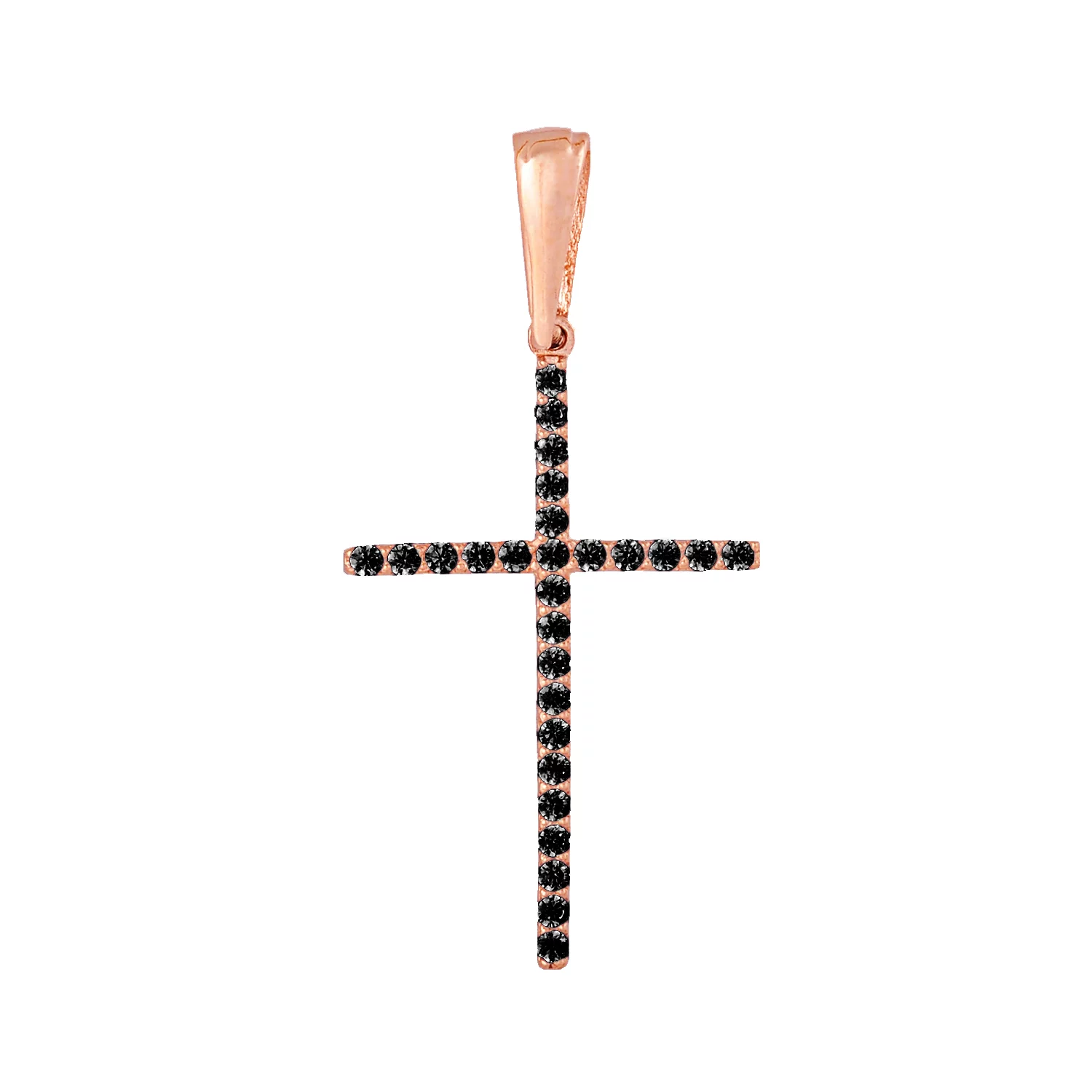 Незвичайний підвіс – двосторонній декоративний хрестик із червоного золота з цирконієм. З одного боку він прикрашений білими цирконієвими стразами, а з іншого – чорними. Тому навіть якщо прикраса випадково перекрутиться на ланцюжку, вона не втратить своєї привабливості. Склад проби 585 надає золоту міцності, зносостійкості та приємного теплого відтінку завдяки наявності в сплаві міді. А блиск кристалів перетворює скромний, строгий хрестик на елегантний кулон. Ювелірний виріб на акуратному золотому ланцюжку стане вдалим доповненням повсякденного образу.