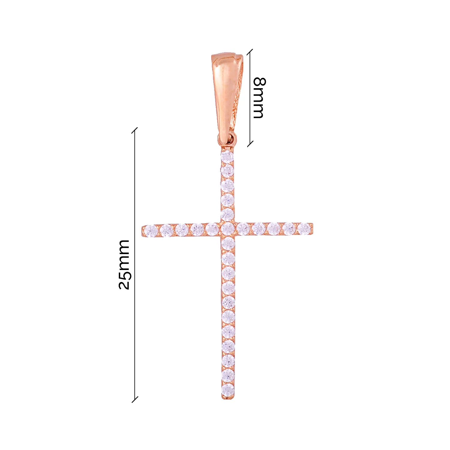 Хрестик двосторонній з червоного золота з фіанітом - 771726