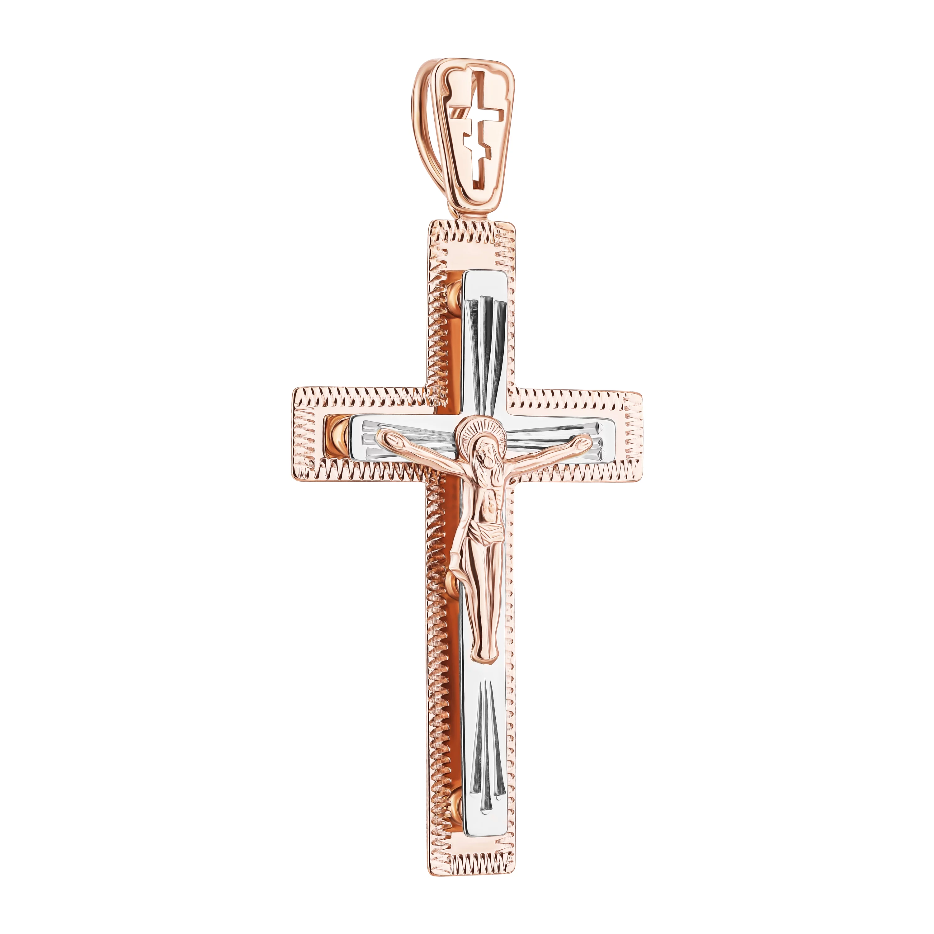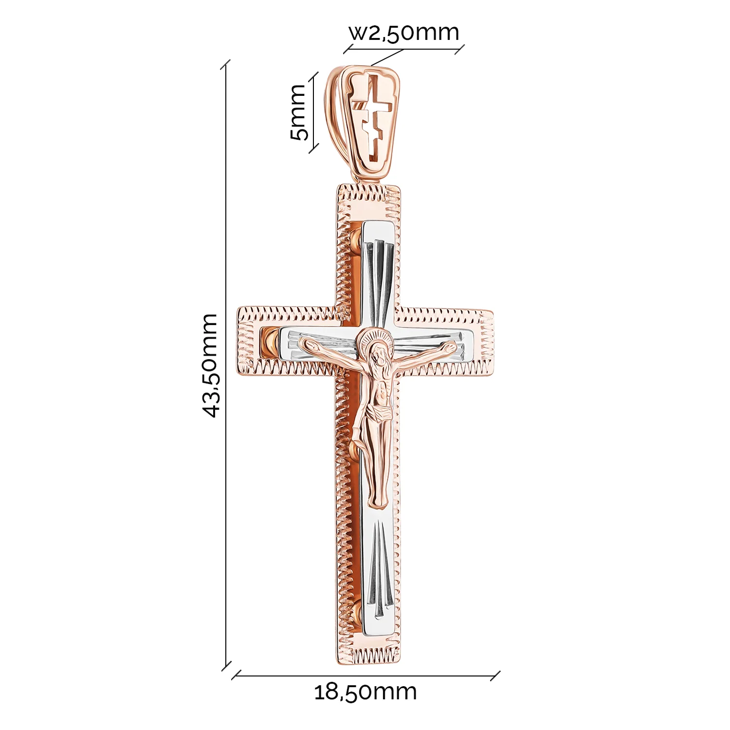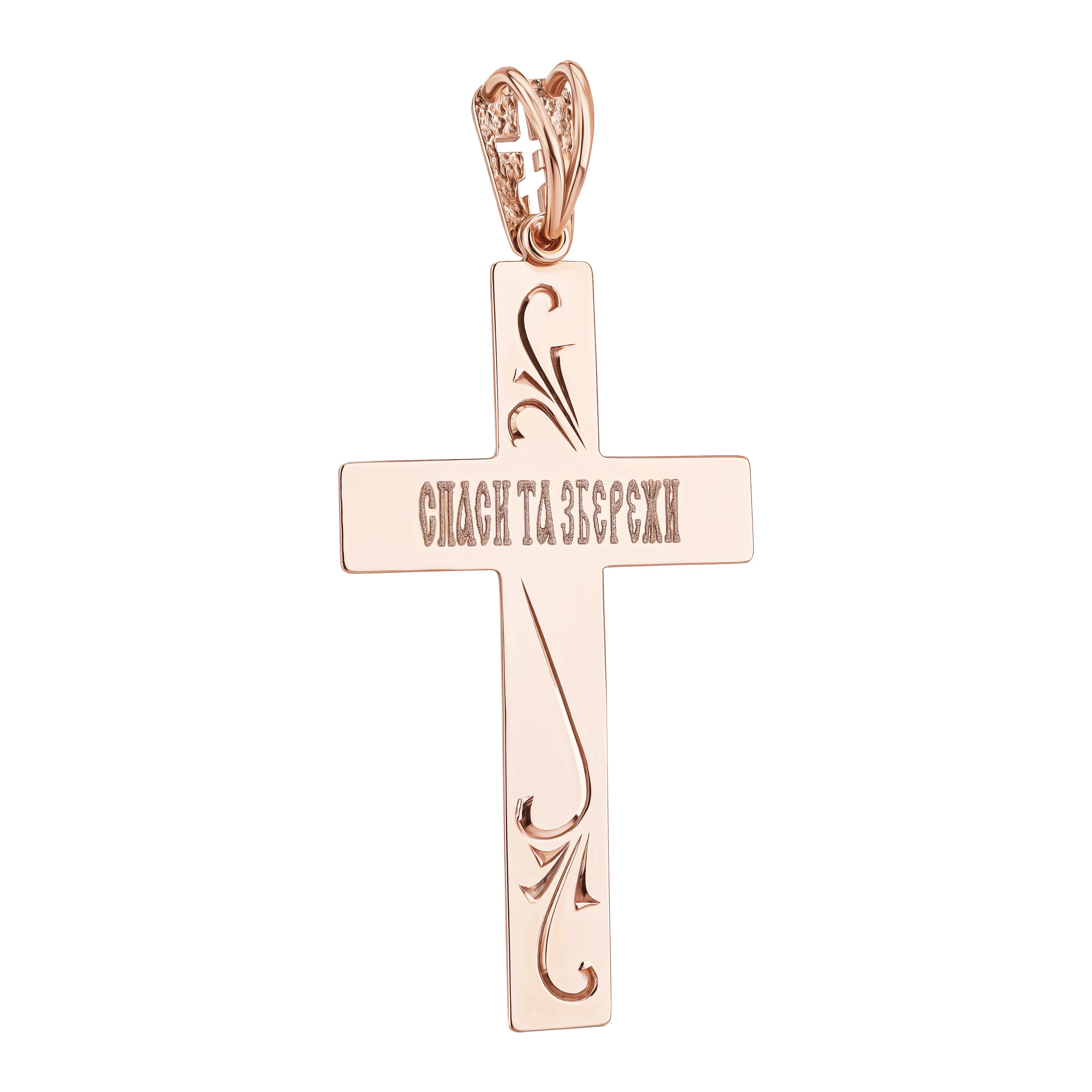 Елегантний хрестик "Ісус Христос" з червоного золота з чорнінням - 1916327