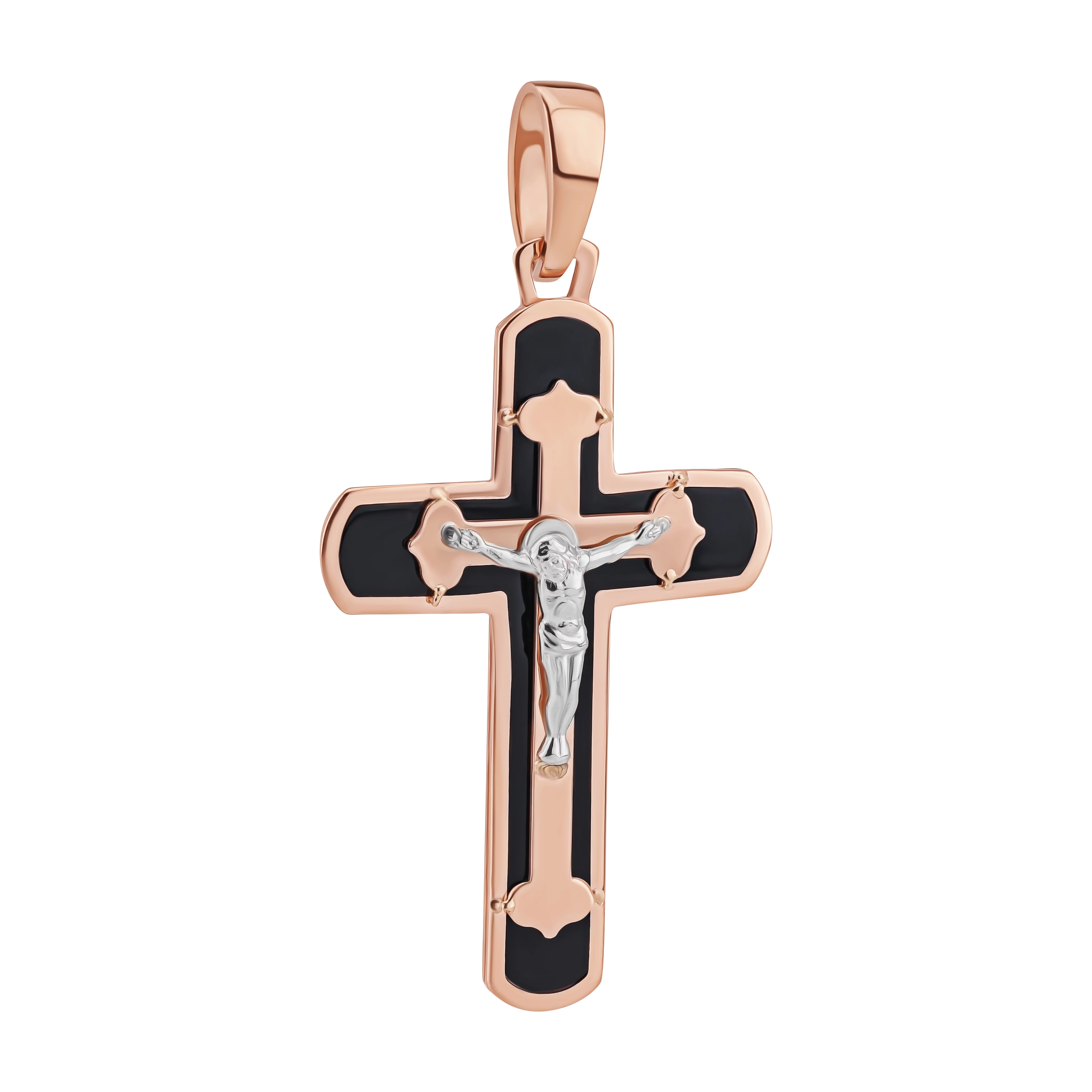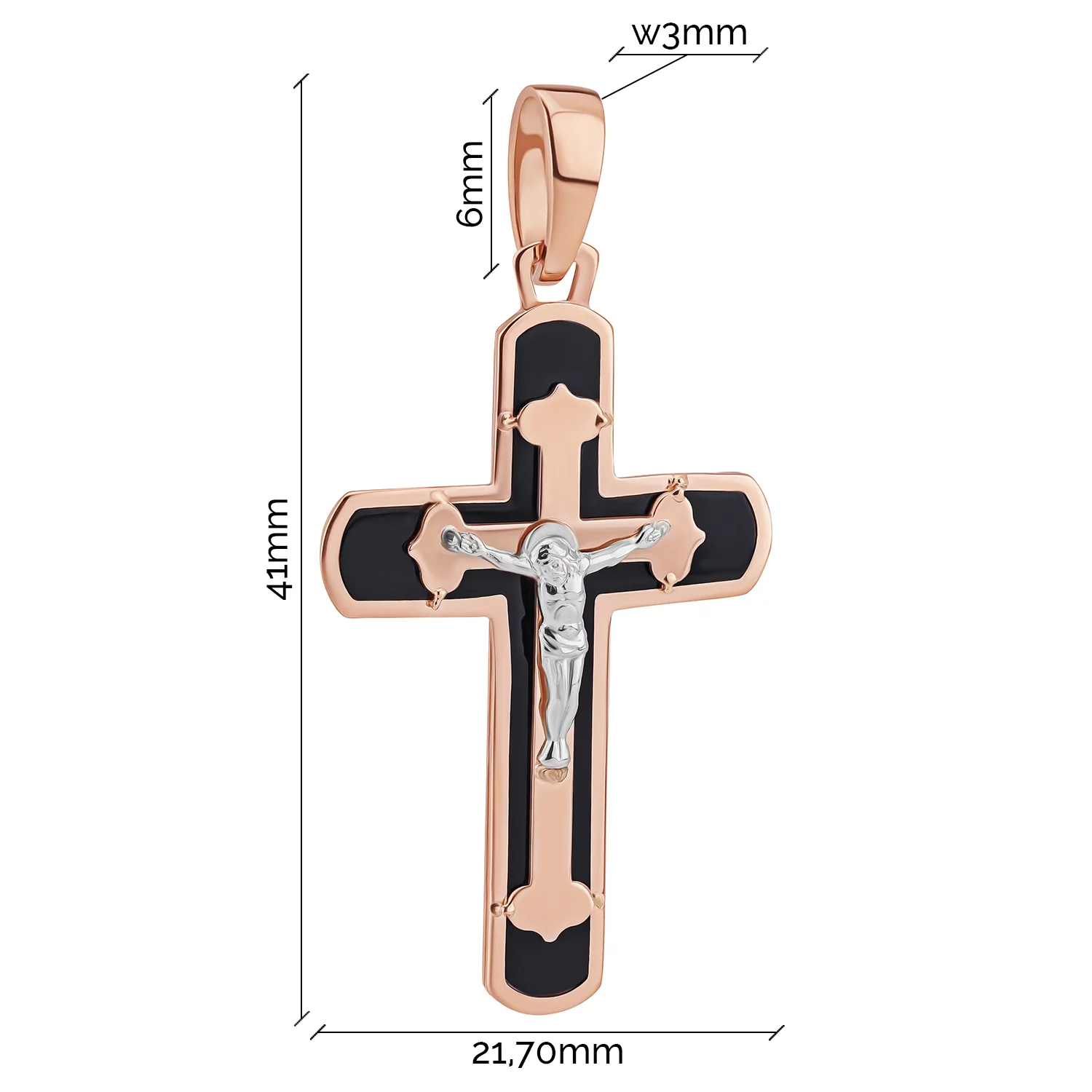 Хрестик "Ісус Христос" з комбінованого золота з емаллю та фіанітами - 1922329