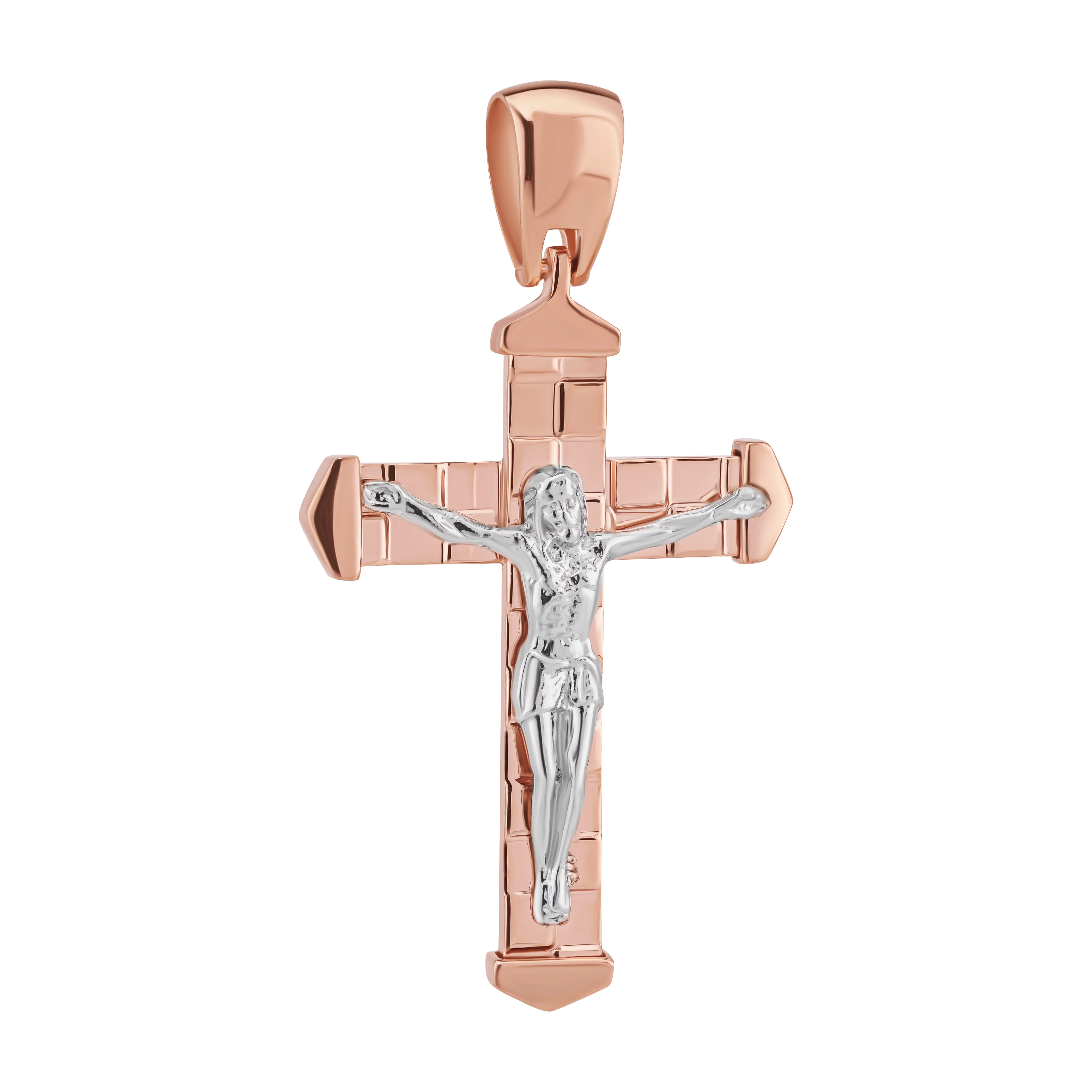 Хрестик "Ісус Христос" у комбінованому золоті - 1943129