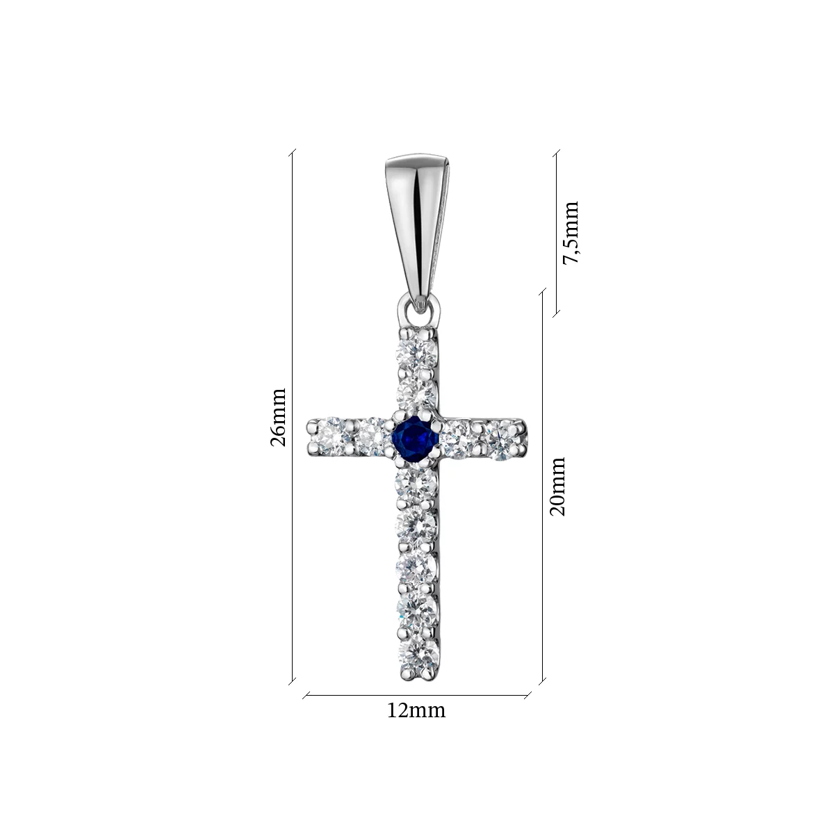 Хрестик декоративний із білого золота з діамантами та сапфірами - 1852425