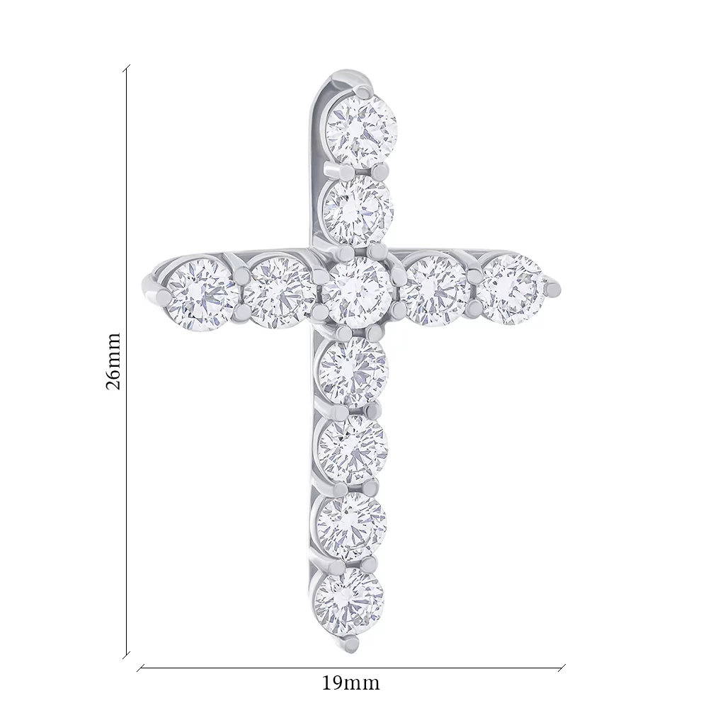 Хрестик декоративний із білого золота з діамантами та сапфірами - 1852425