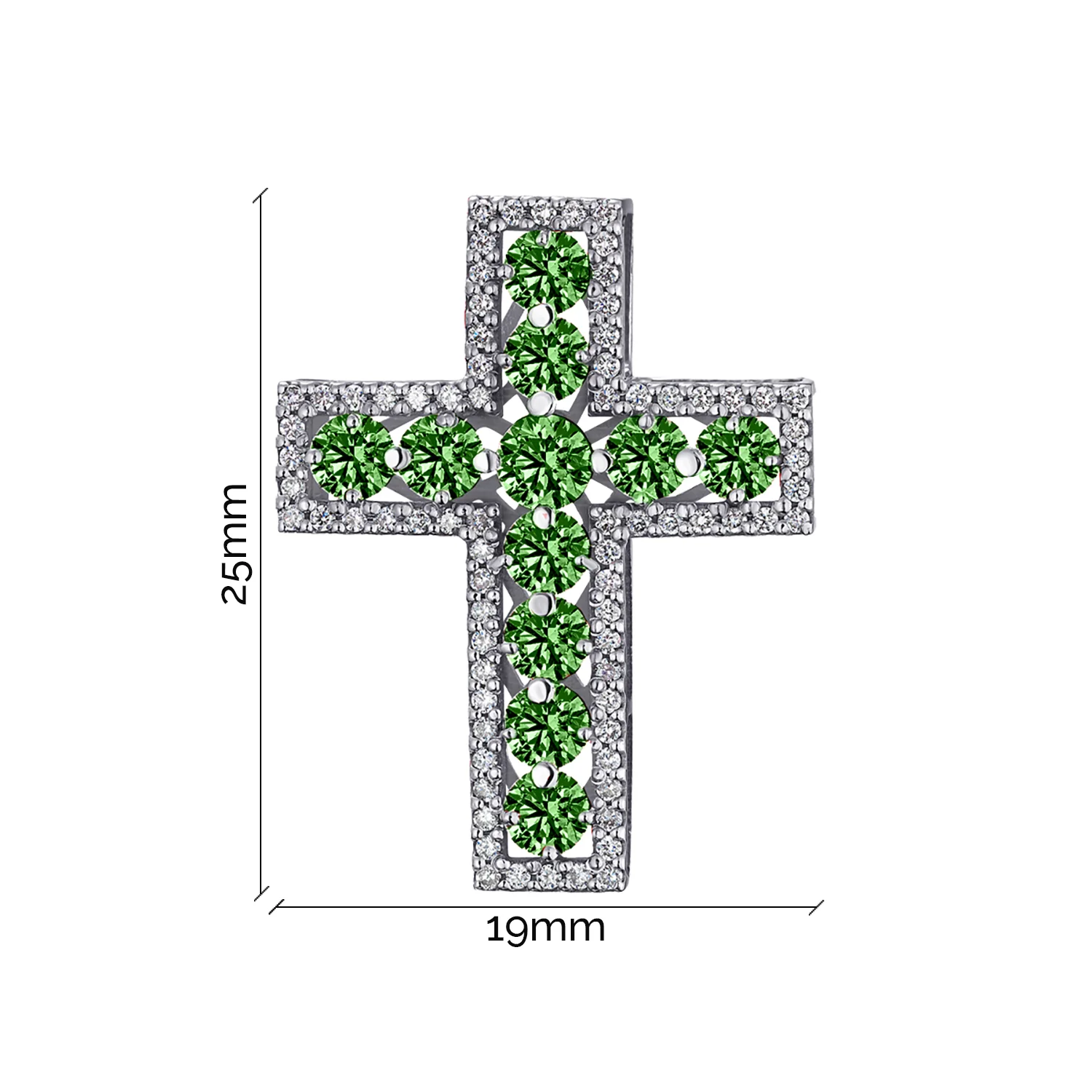 Хрестик декоративний із білого золота з діамантами та сапфірами - 1852425
