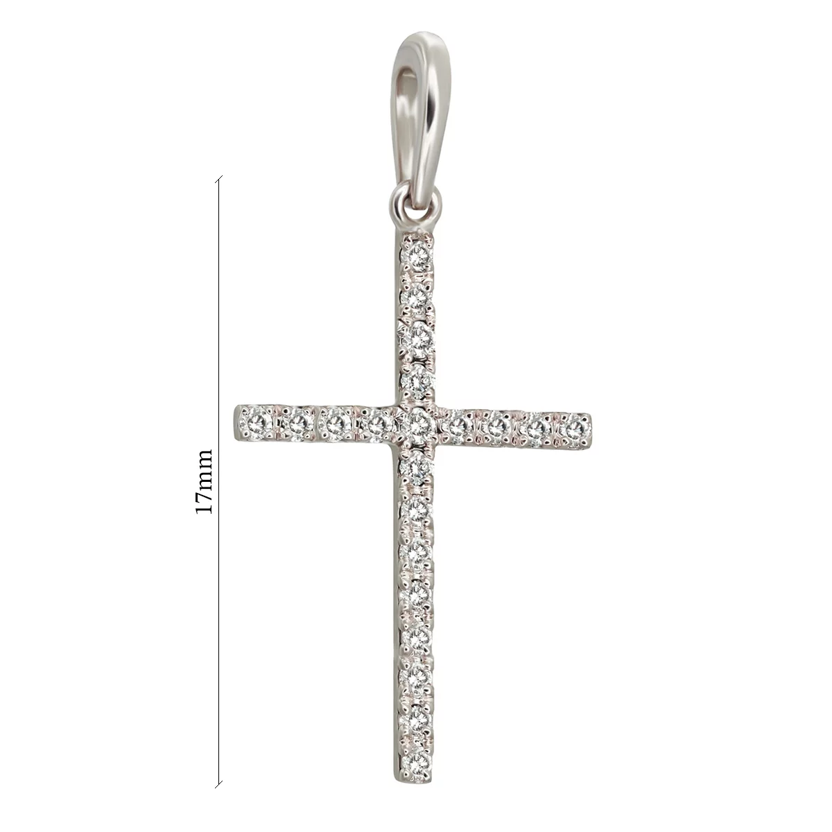 Хрестик з білого золота з фіанітами - 896989