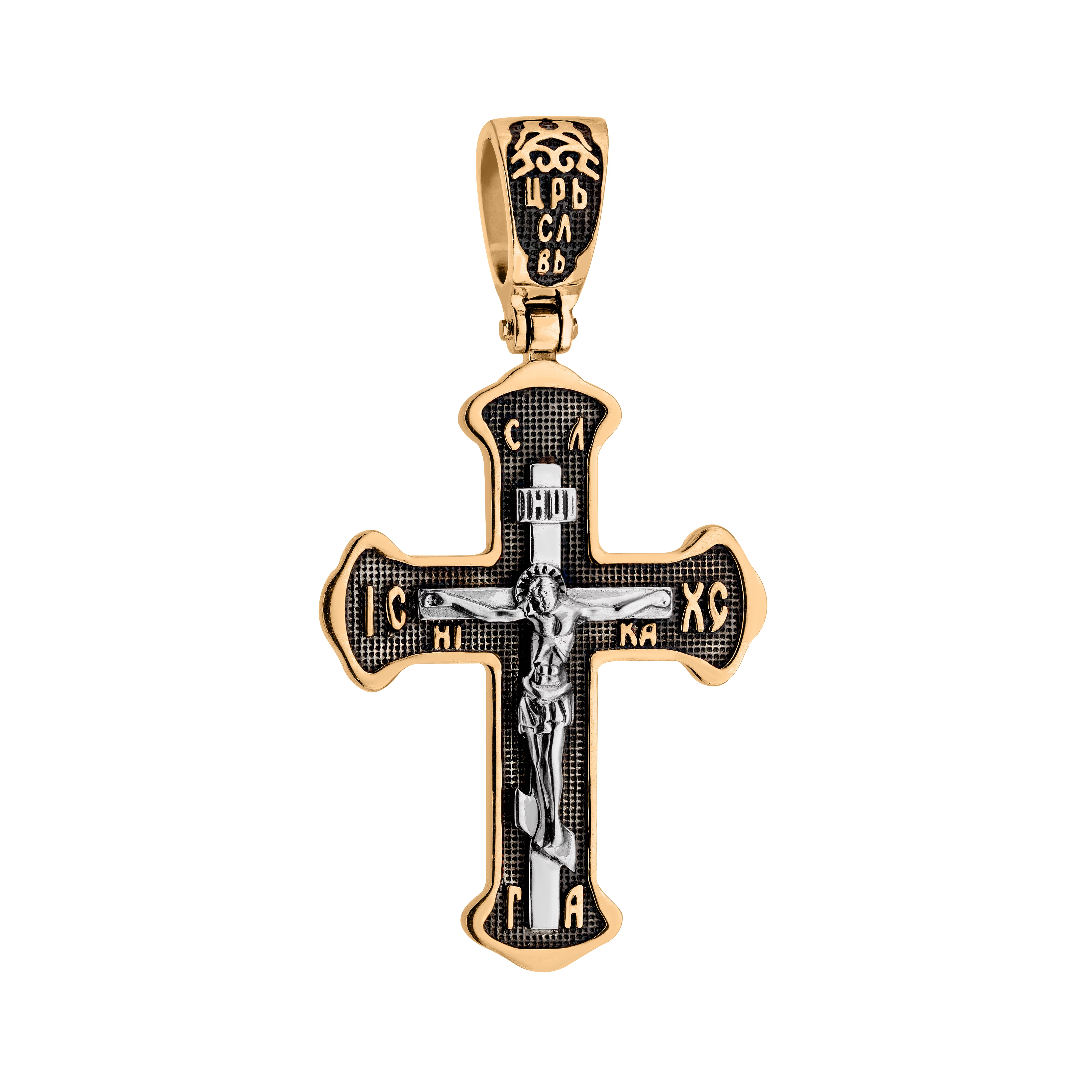 Хрестик із комбінованого золота "Ісус Христос" з чорнінням - 1918775