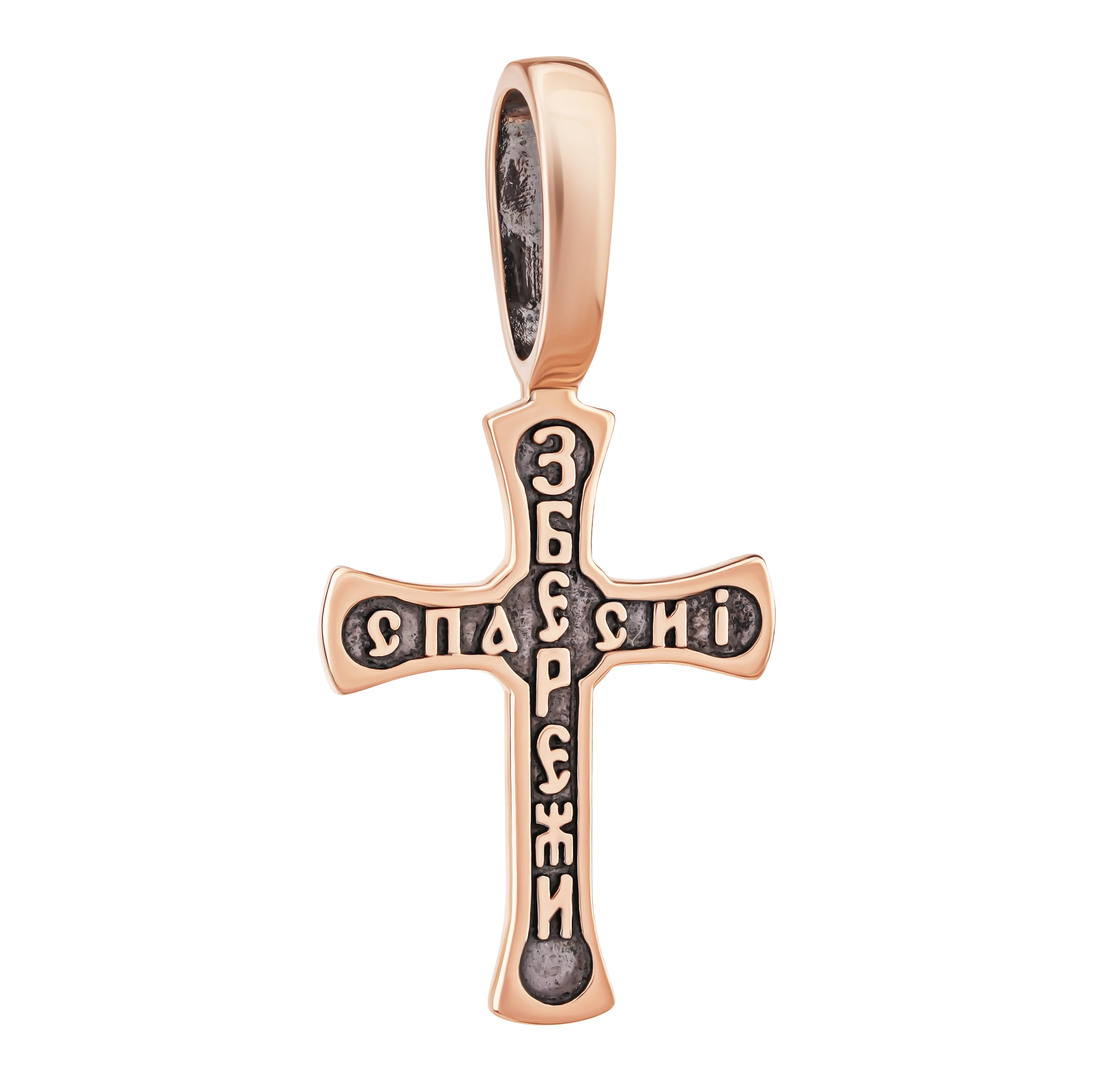 Елегантний хрестик "Ісус Христос" з червоного золота з чорнінням - 1916327