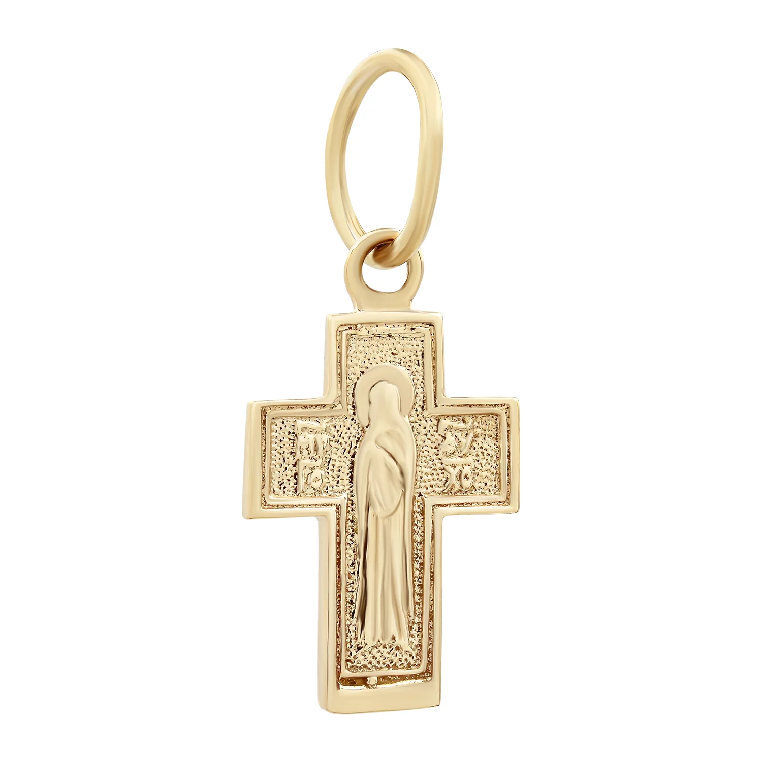 Двосторонній натільний хрестик із червоного золота – чудова прикраса для щоденного носіння. Виріб підійде дорослим жінкам і чоловікам. Мідь у складі сплаву 585 проби не дає прикрасі тьмяніти, робить її міцнішою і зносостійкою. У разі появи подряпин, легко піддається поліруванню. Дизайн прикраси незвичайний – безликі образи символізують чисту віру в Бога. Комбінація Ісуса Христа і Божої Матері уособлює глибокий релігійний сенс. Образ Богородиці прийнято дарувати рідним, щоб захистити їх від негараздів.