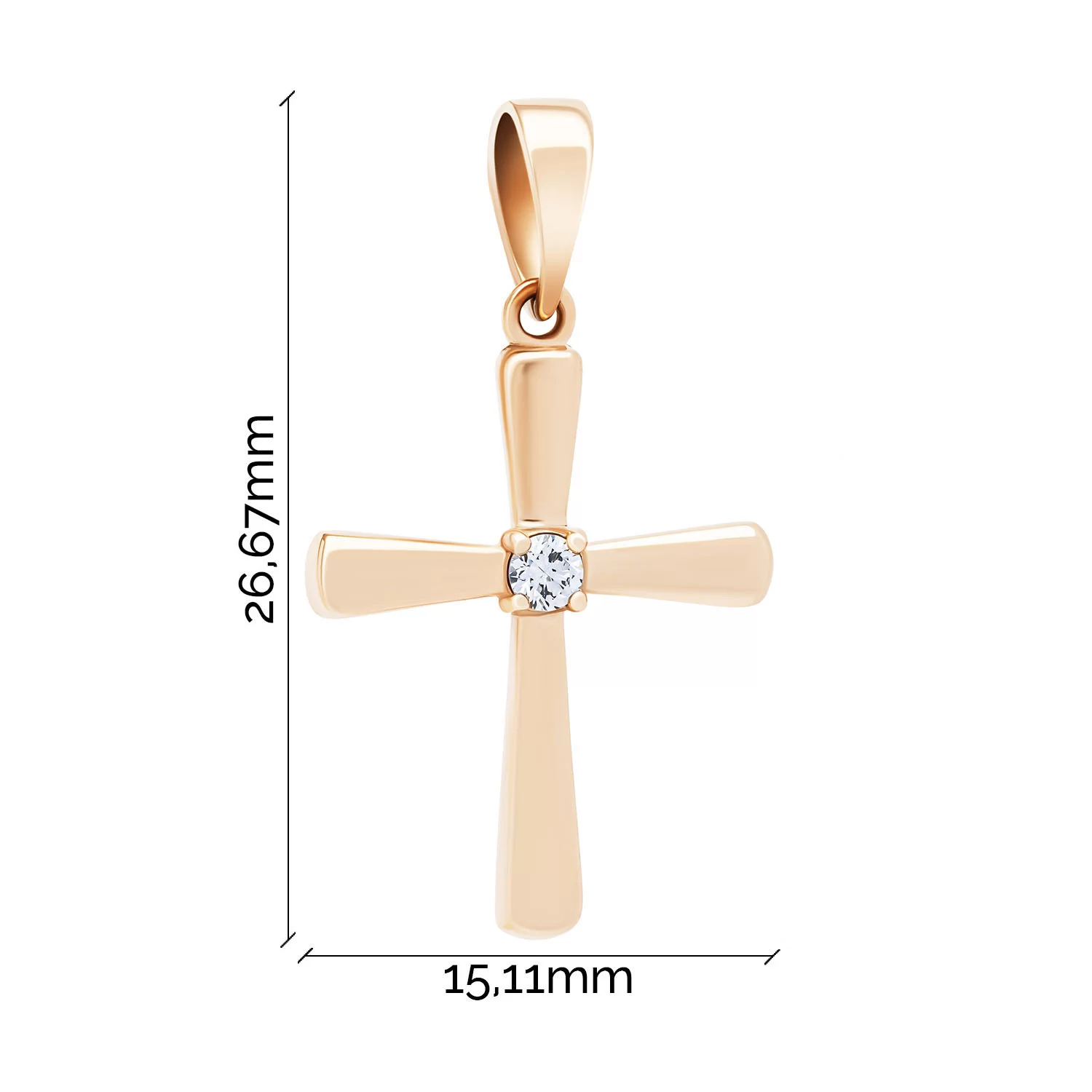 Стильний декоративний подвійний хрестик із червоного золота з діамантами - 1919553