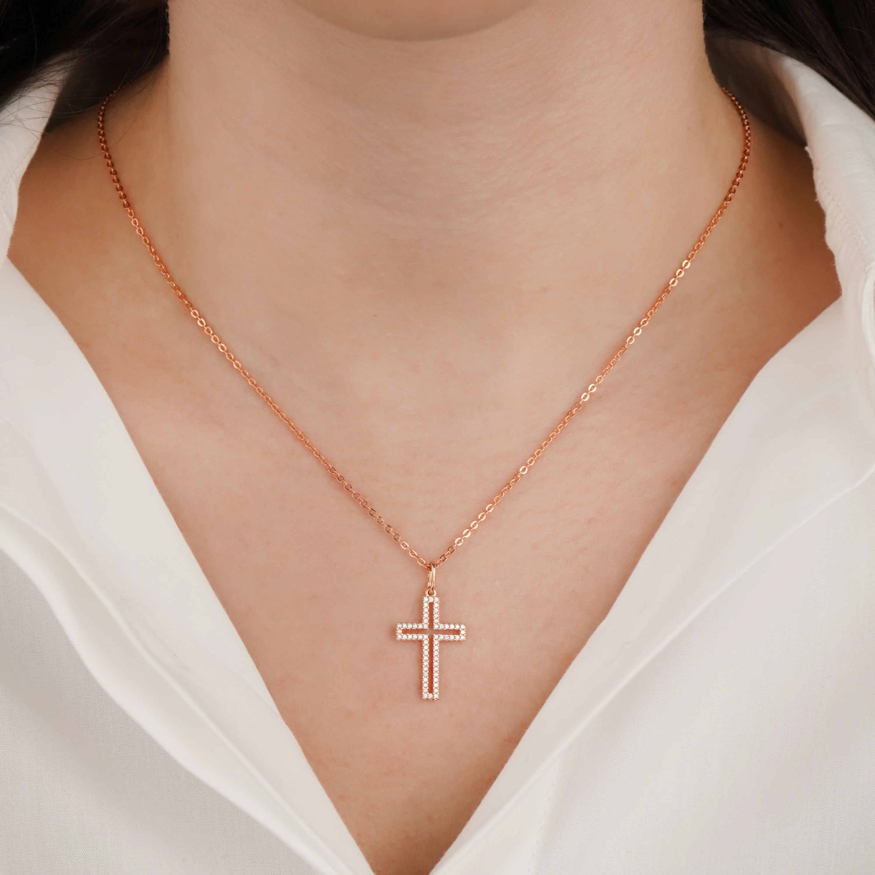 Декоративний хрестик із червоного золота з доріжкою фіанітів - 1545402
