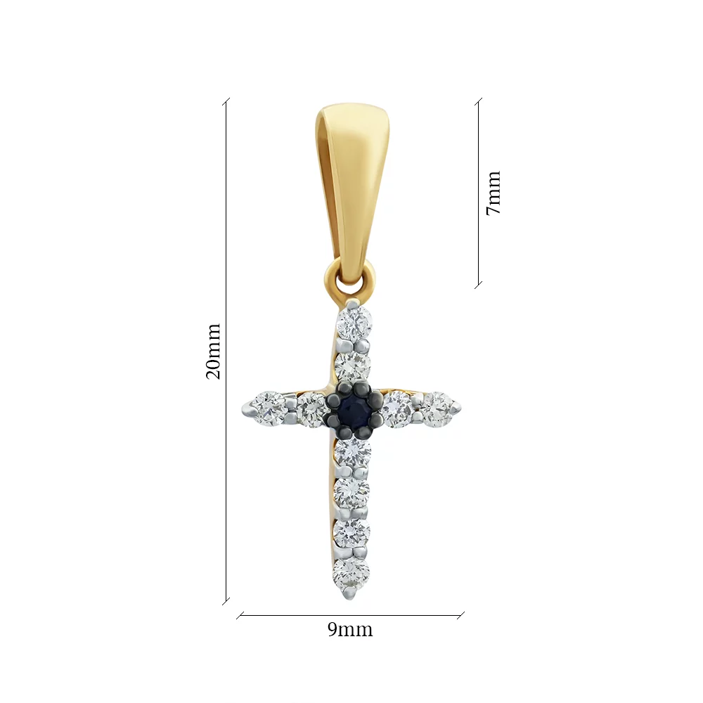 Хрестик декоративний із білого золота з діамантами та сапфірами - 1852425