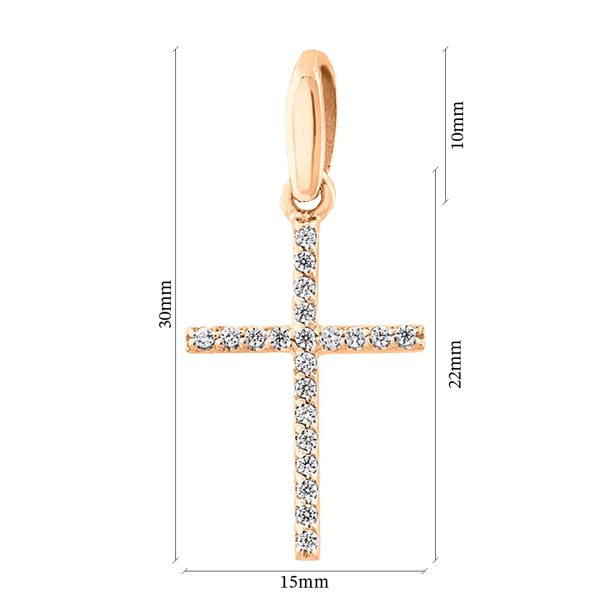 Декоративний хрестик із червоного золота з доріжкою фіанітів - 1545402