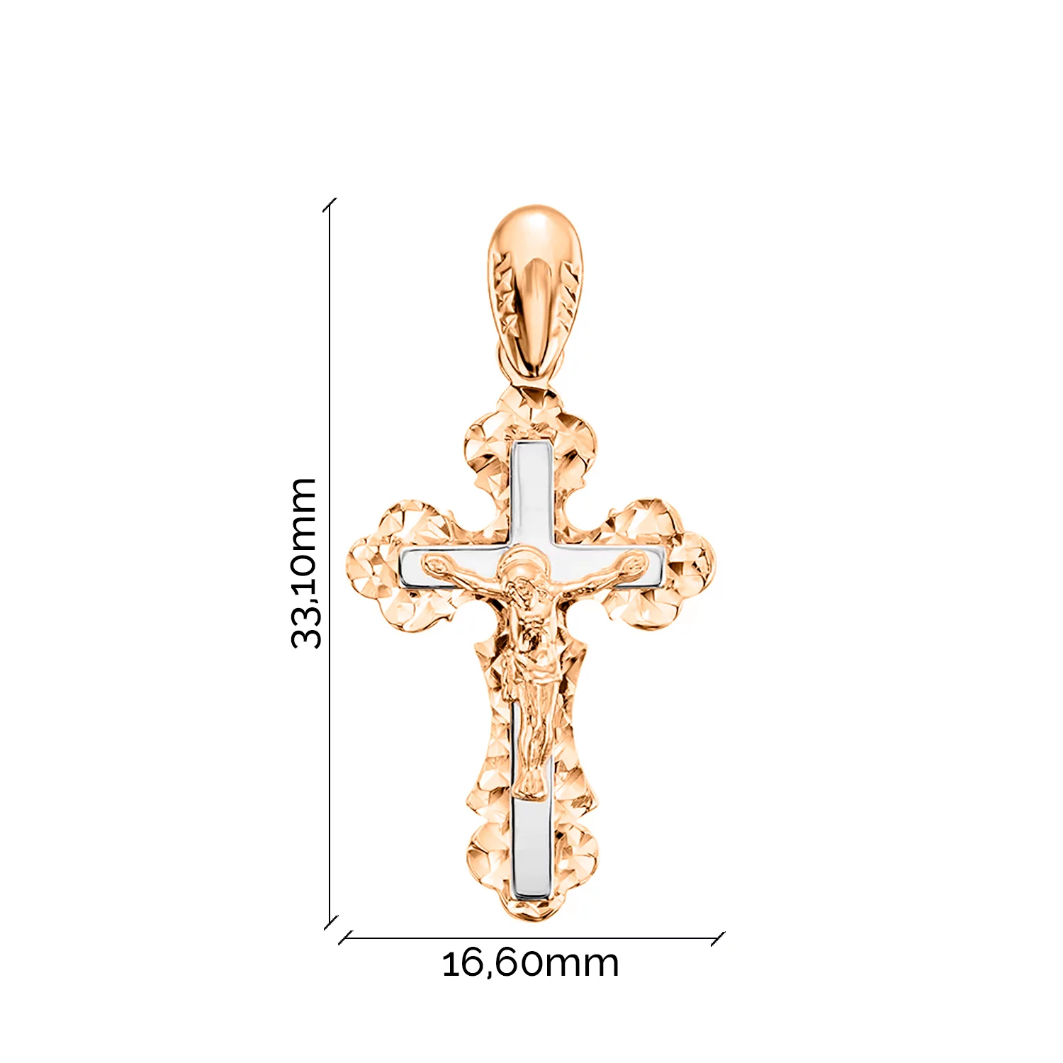 Хрестик з алмазною гранню з червоного золота і вставкою з білого - 1538994