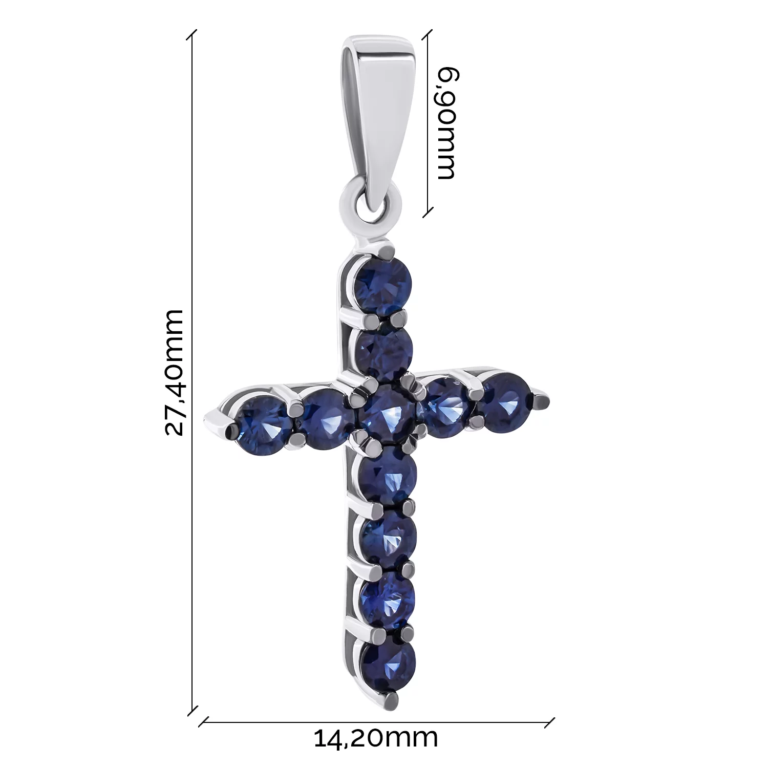 Хрестик декоративний із білого золота з діамантами та сапфірами - 1852425