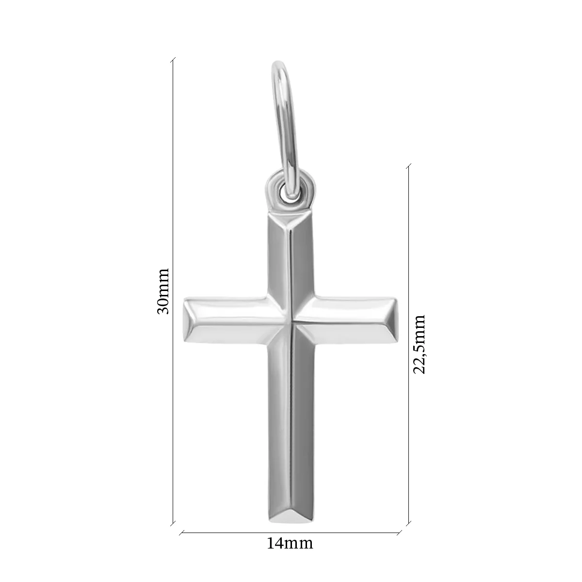Срібний хрестик унісекс із тонким підвісним вушком. Прикраса виготовлена зі сплаву 925 проби. Метал називають стерлінговим, адже кількість домішок становить лише 7,5%, він практично чистий. Коштовність виконана в класичному стилі, вона має мінімалістичний вигляд. Об'ємні грані задають акцент і характер ювелірному виробу. Стриманий хрестик – чудовий варіант для завершення повсякденного або ділового образу. Він добре поєднується з тонкими ланцюжками зі світлих металів і з непомітним плетінням. Підвіска підійде як презент на урочисту подію.