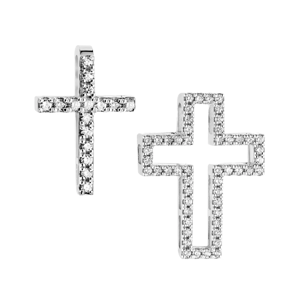 Хрестик декоративний із білого золота з діамантами та сапфірами - 1852425
