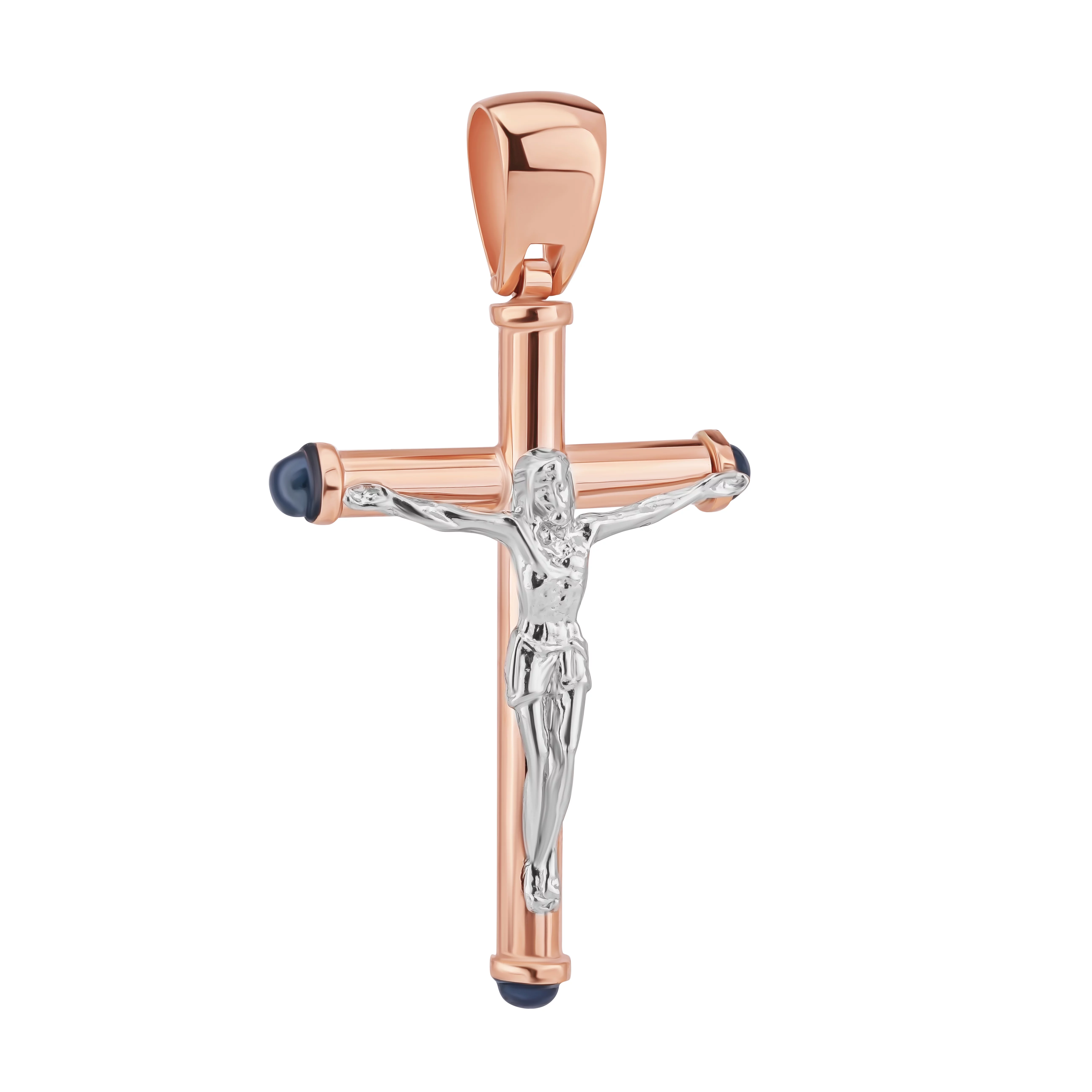 Хрестик у комбінованому золоті "Ісус Христос" з фіанітами - 1943047