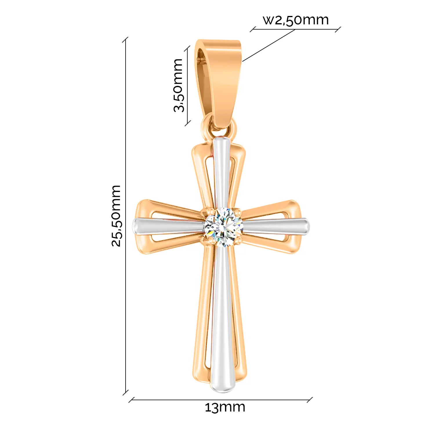 Хрестик у комбінованому золоті декоративний з діамантом - 1777724