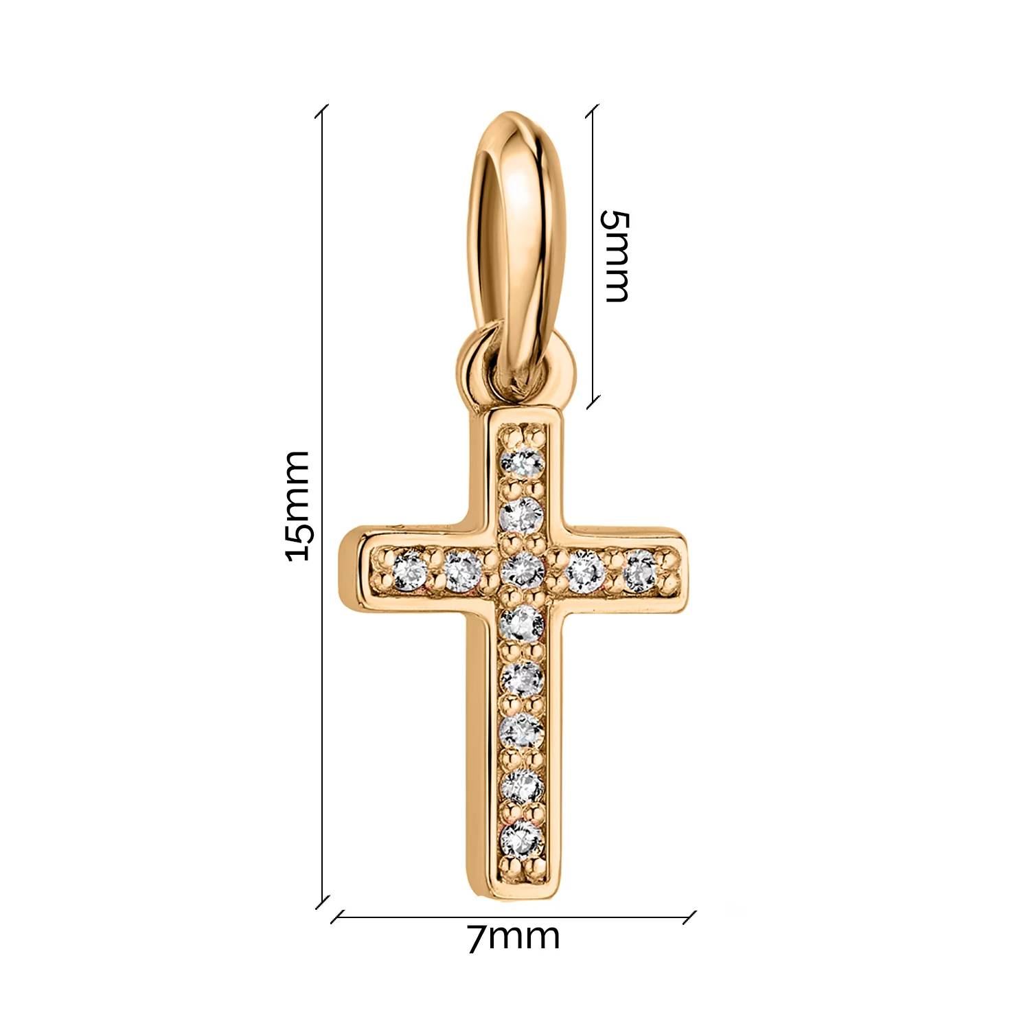 Хрестик декоративний з червоного золота з доріжкою діамантів - 1819214