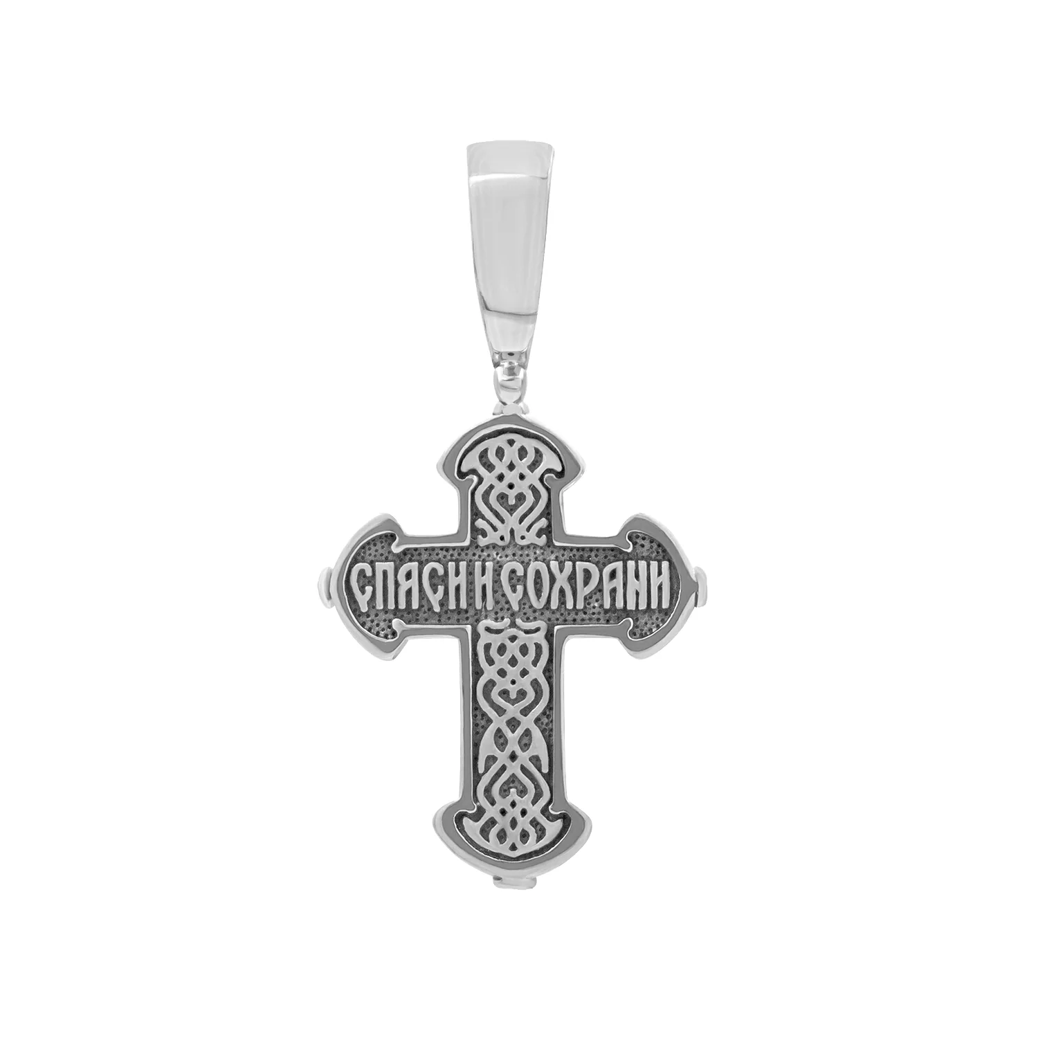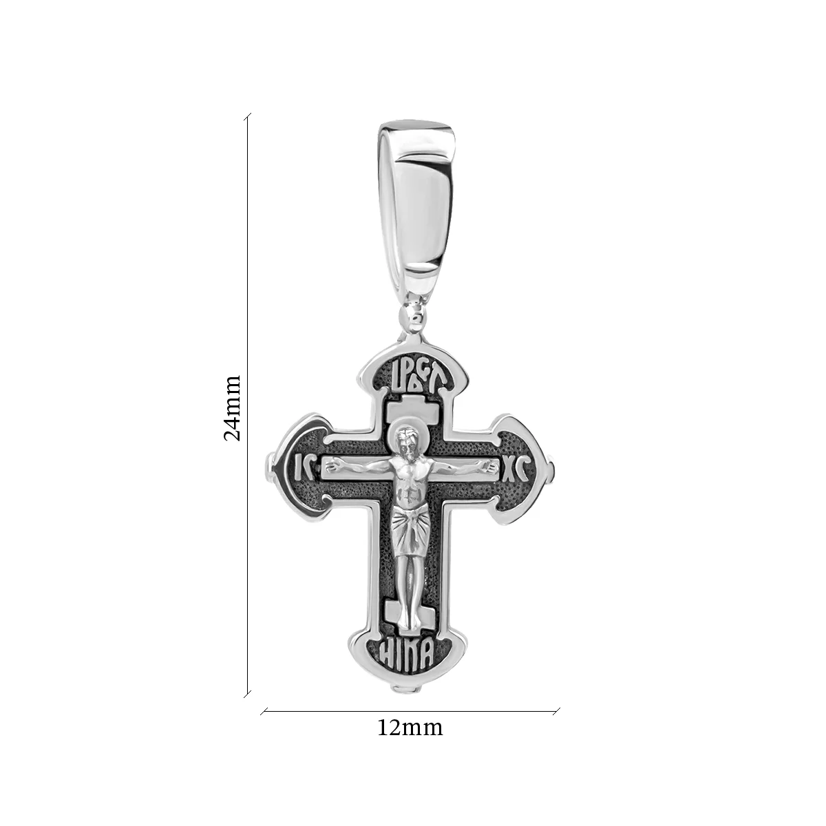 Золотий хрестик - прикраса, яка виділяється на тлі інших яскравим дизайнерським рішенням. Темний відтінок напилення має стильний вигляд, а неоднорідність фактури привносить нові нотки в оформлення. Тильна сторона прикраси за дизайном може конкурувати з основною завдяки об'ємному напису-оберегу та вишуканому орнаменту.